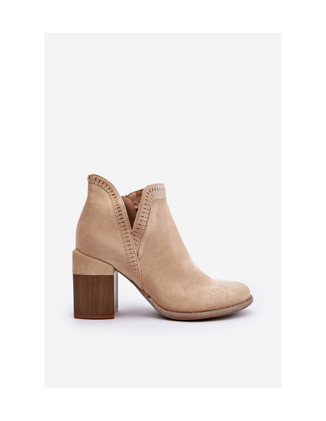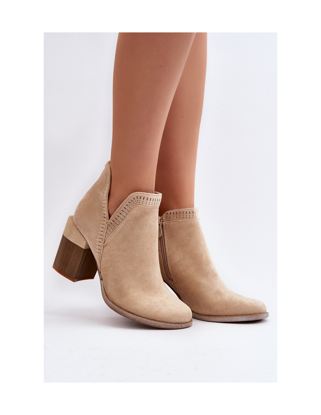 Moteriški auliniai batai iš malonaus liesti ekologiškos zomšos. Tvirtinama ant masyvaus stulpo. Batviršis iki kulkšnių su išpjova ir ažūriniu raštu. Užsegamas užtrauktuku. Suapvalinti kojų pirštai. Eko odos vidpadis užtikrina komfortą dėvint. Puikiai tinka pavasario stiliui! Renkantis dydį, vadovaukitės dydžių lentele.