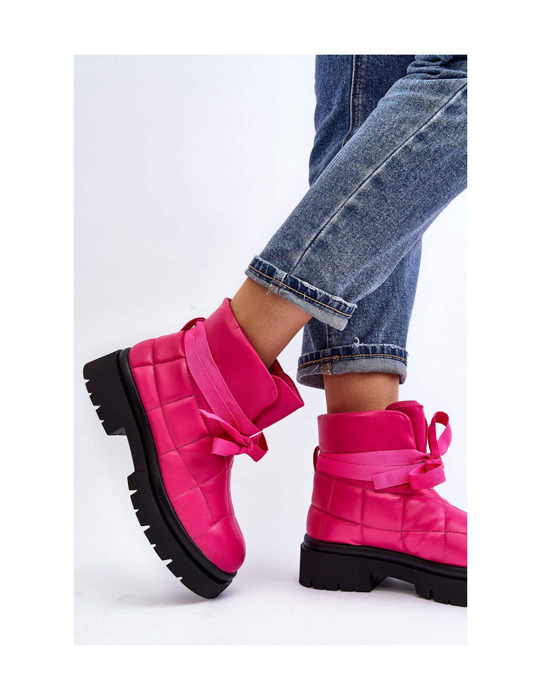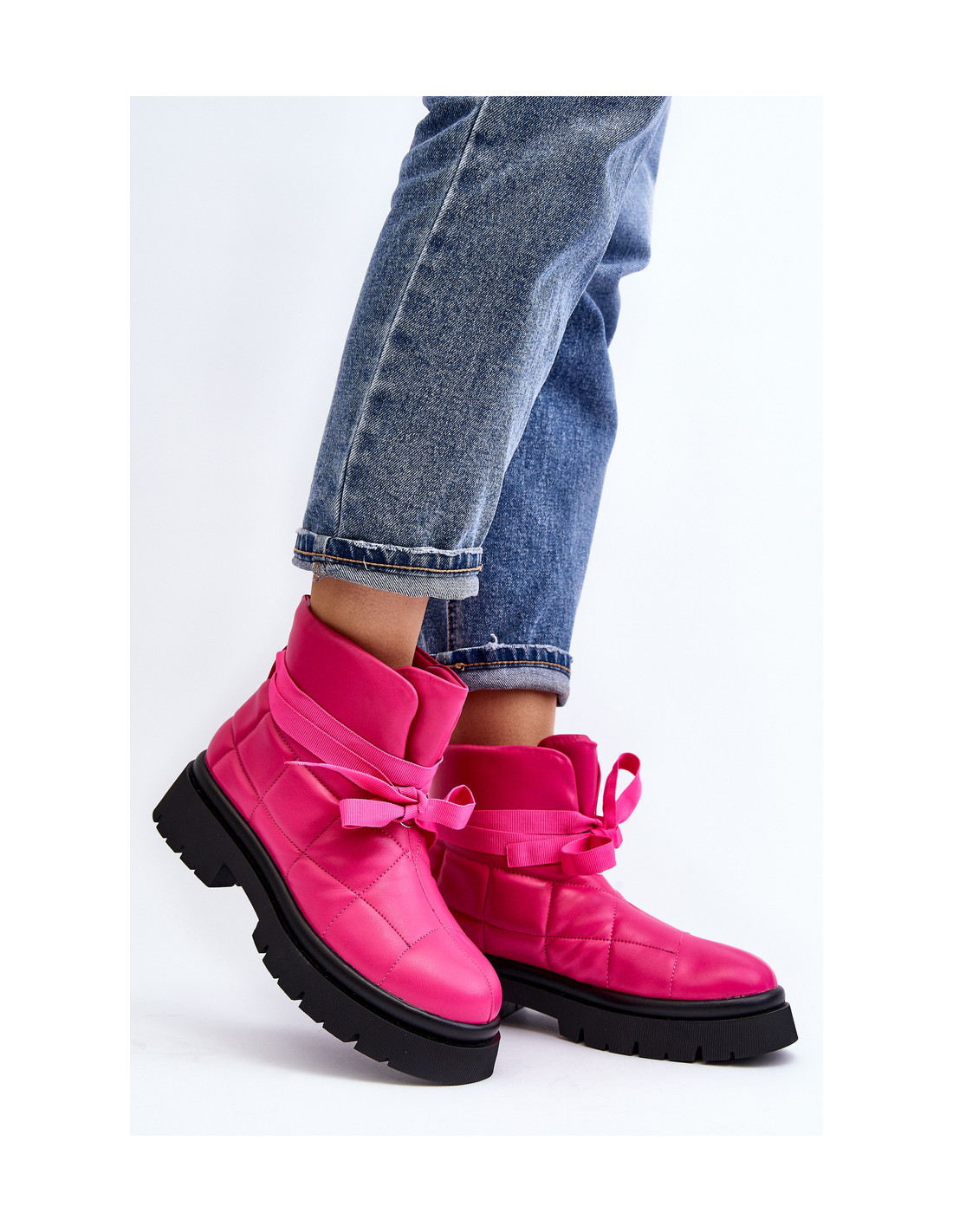 Moteriški kulkšnies batai su dygsniuotu ir suvarstoma rožinė Bizzanti
