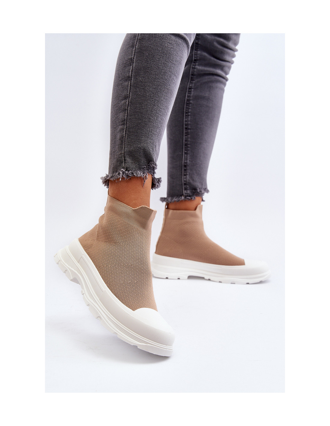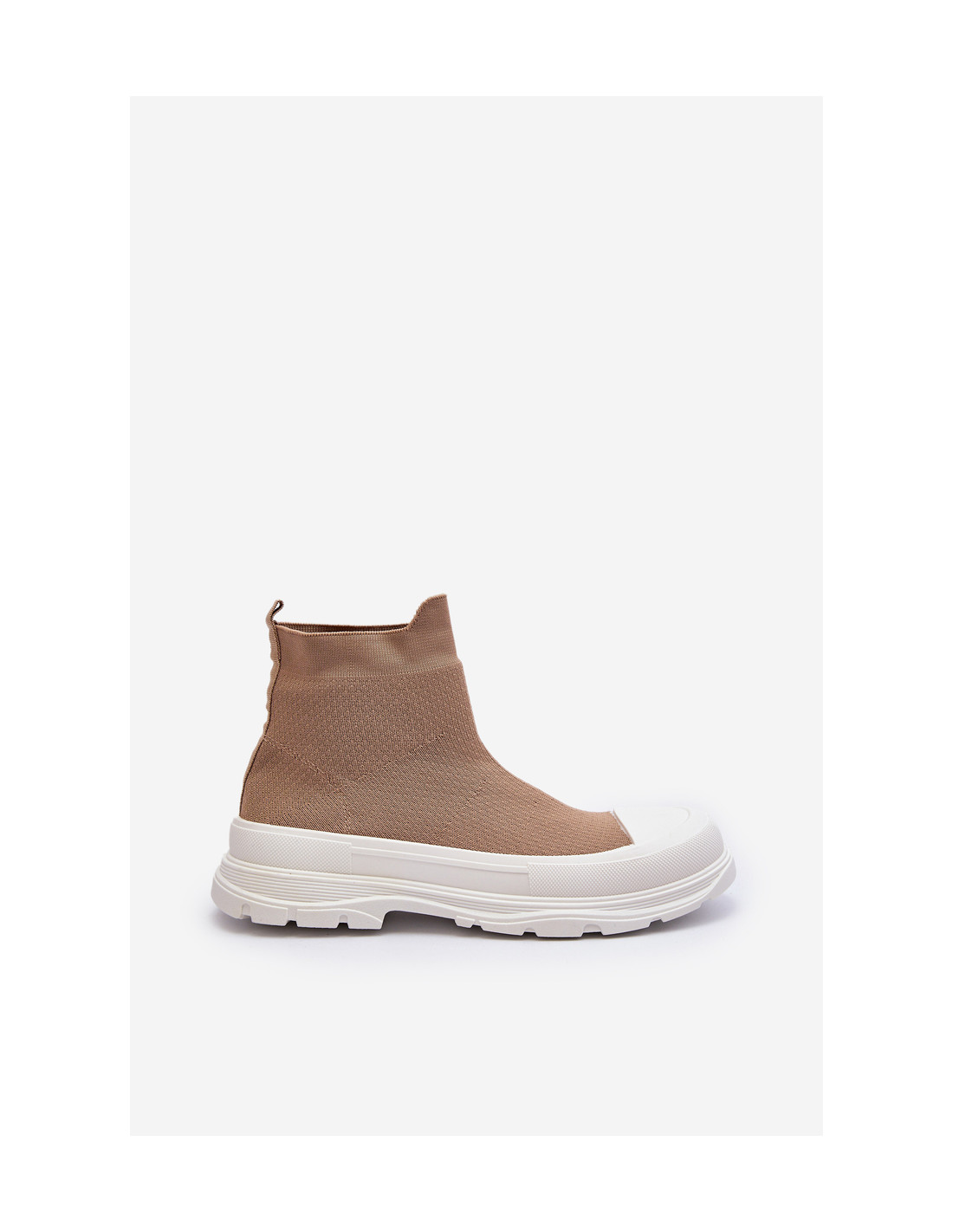 Moteriški kulkšnies batai su kojinių viršumi. Pagaminta iš tekstilės medžiagos. Pastatas ant platformos ir plokščio kulno iš guminės medžiagos. Minkšto putplasčio įdėklas yra padengtas audiniu ir taip pat gali būti nuimamas. Puikiai tinka ilgiems pasivaikščiojimams ar kasdienėms pareigoms! Renkantis dydį, vadovaukitės dydžių lentele.