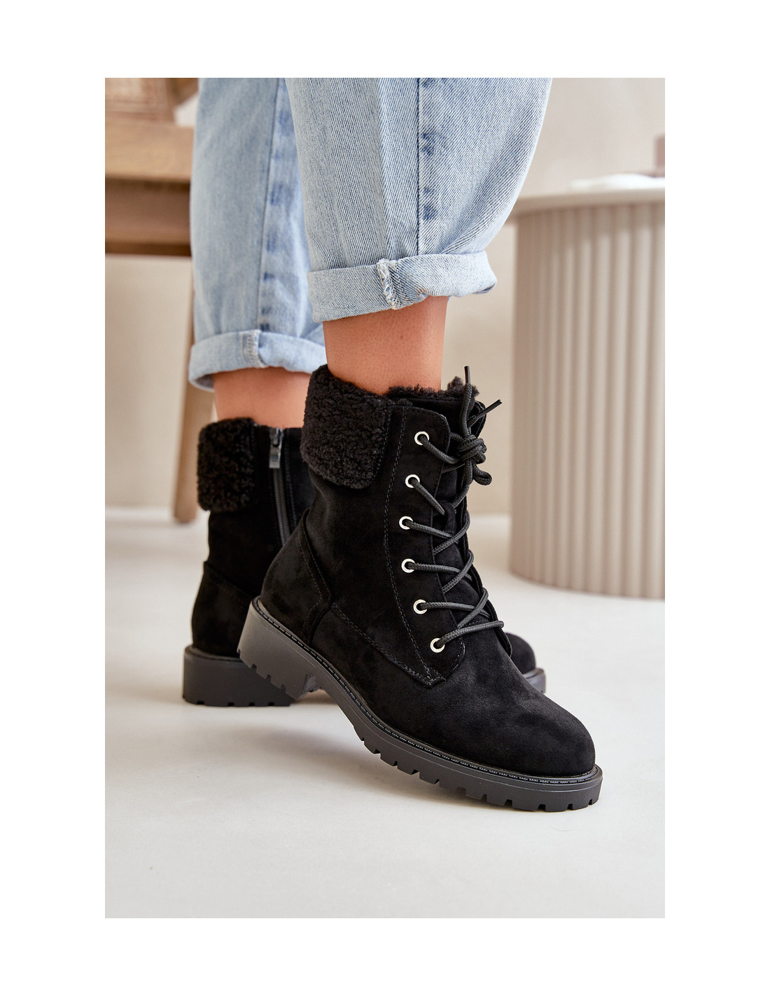 Moteriški batai iš minkštos ekologiškos zomšos. Vidus apšiltintas batų antklode, kuri užtikrina komfortą šaltesnėmis dienomis. Viršus puoštas stilingu avikailiu. Suvarstomas modelis su papildomu užtrauktuku, kuris palengvina užsidėjimą ir prisitaikymą prie pėdos. Puikiai tinka rudens-žiemos pasivaikščiojimams ir kasdieniniam stiliui. Renkantis dydį, vadovaukitės dydžių lentele.
