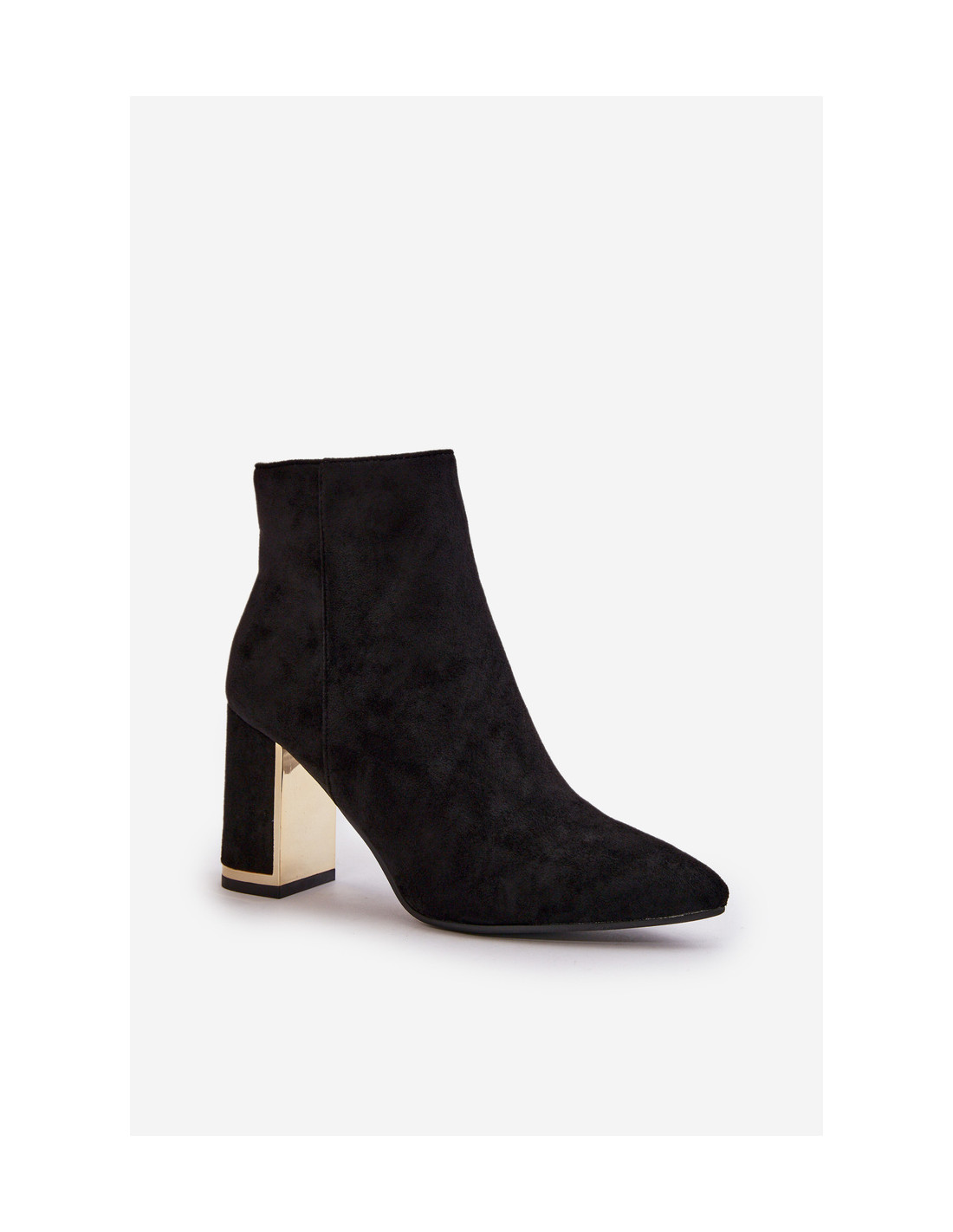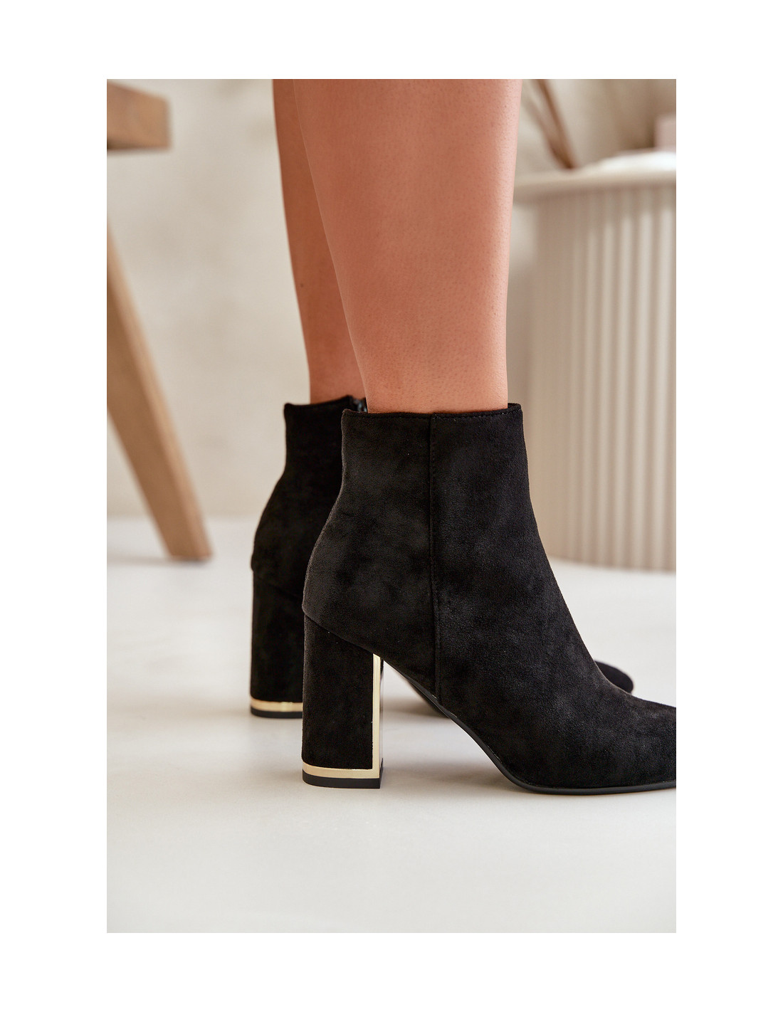 Moteriški batai iš ekologiškos zomšos, malonūs liesti ir suteikiantys elegantišką išvaizdą. Batų vidus yra izoliuotas, kas suteikia šilumos ir komforto šaltesnėmis dienomis. Smailūs pirštai suteikia jiems stilingumo, o stabilaus stulpelio formos kulną papildomai puošia veidrodinis elementas, kuris aulinukams suteikia nepakartojamo blizgesio ir madingo akcento. Jūs tikrai turėtumėte juos turėti savo rudens-žiemos garderobe! Renkantis dydį, vadovaukitės dydžių lentele.