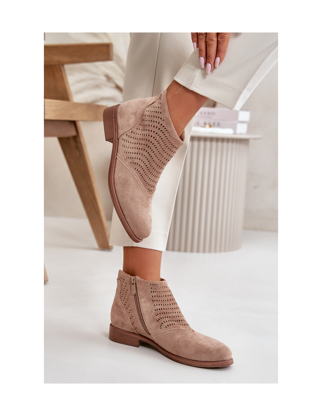Moteriški S.Barski prekės ženklo auliniai batai. Pagaminta iš ekologiškos zomšos. Ažūrinis viršus, siekiantis virš kulkšnies, daro juos gležnus. Plokščias kulnas užtikrina stabilumą ir patogumą naudojant. Užtrauktukas leidžia lengvai apsiauti ir greitai nusiauti batus. Suapvalinti kojų pirštai. Klasikinis dizainas, kuris tikrai derės prie daugelio stilių! Renkantis dydį, vadovaukitės dydžių lentele.