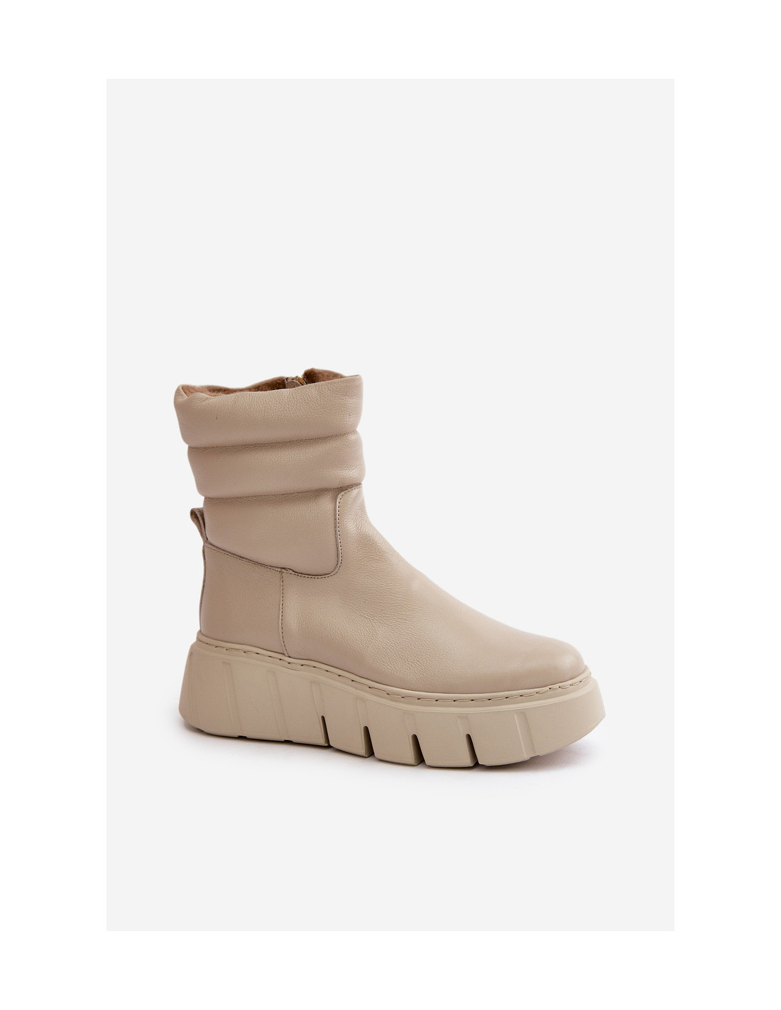 Zazoo 60512 moteriški odiniai batai su užtrauktuku, šilti su veltiniu, šviesiai smėlio spalvos
