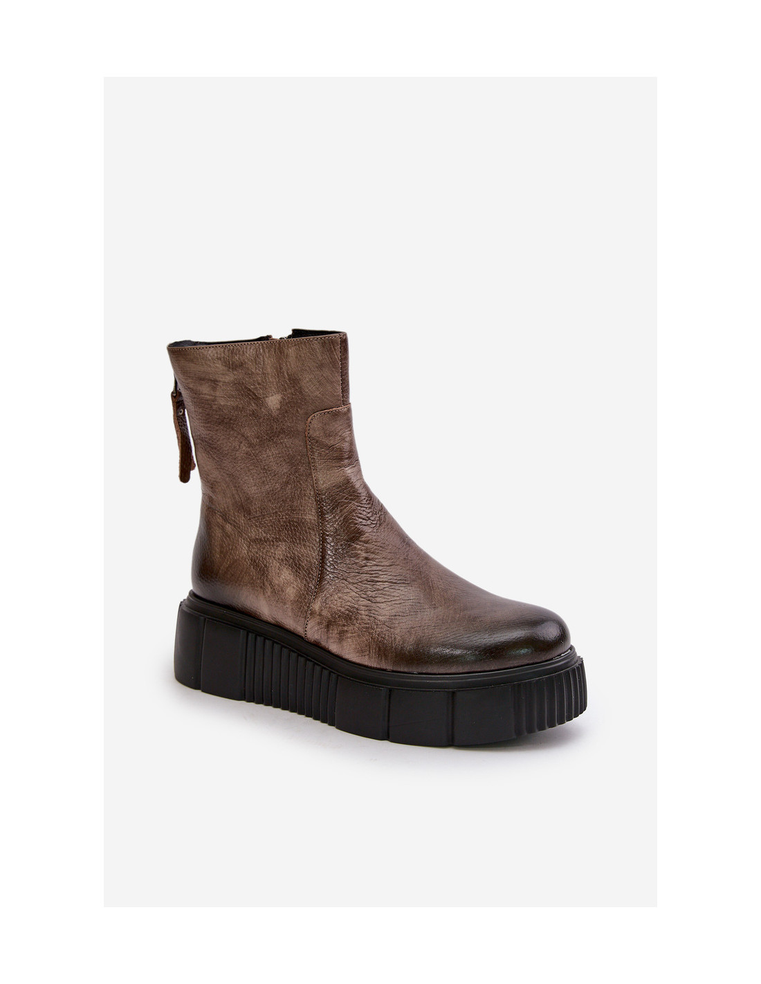 Moteriški kulkšnies batai pagaminti iš aukštos kokybės natūralios odos. Pastatykite ant masyvios platformos su subtiliu pleištu. Viršus šone užsegamas užtrauktuku, o nugaroje – dekoratyvinis užtrauktukas. Be to, batai turi standintą kulną. Viduje izoliuotas veltiniu. Šis modelis tikrai tiks prie daugelio rudens stilių! Renkantis dydį, vadovaukitės dydžių lentele