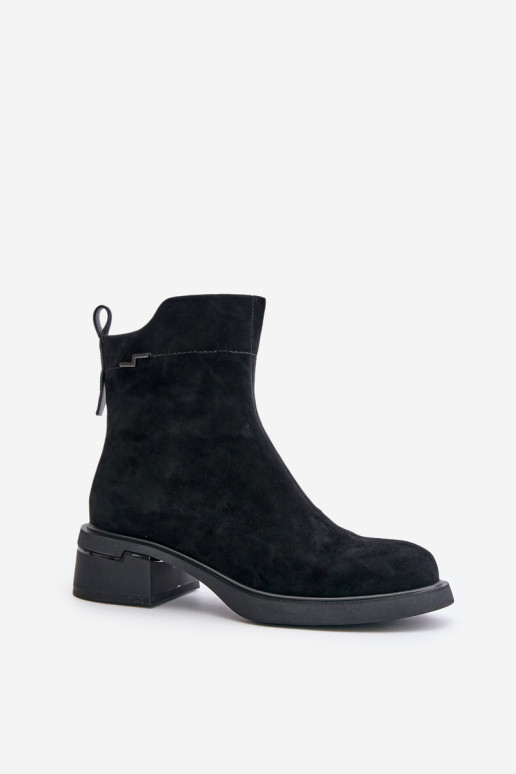 Moteriški batai iš natūralios zomšos. Viršus dekoruotas smulkia detale ir siūlėmis. Suapvalinti kojų pirštai. Užtrauktukas leidžia greitai ir lengvai apsiauti ir nusiauti batus. Vidus apšiltintas maloniu liesti batų antklode, kuri suteiks komforto ir šilumos šaltesnėmis dienomis. Renkantis dydį, vadovaukitės dydžių lentele.