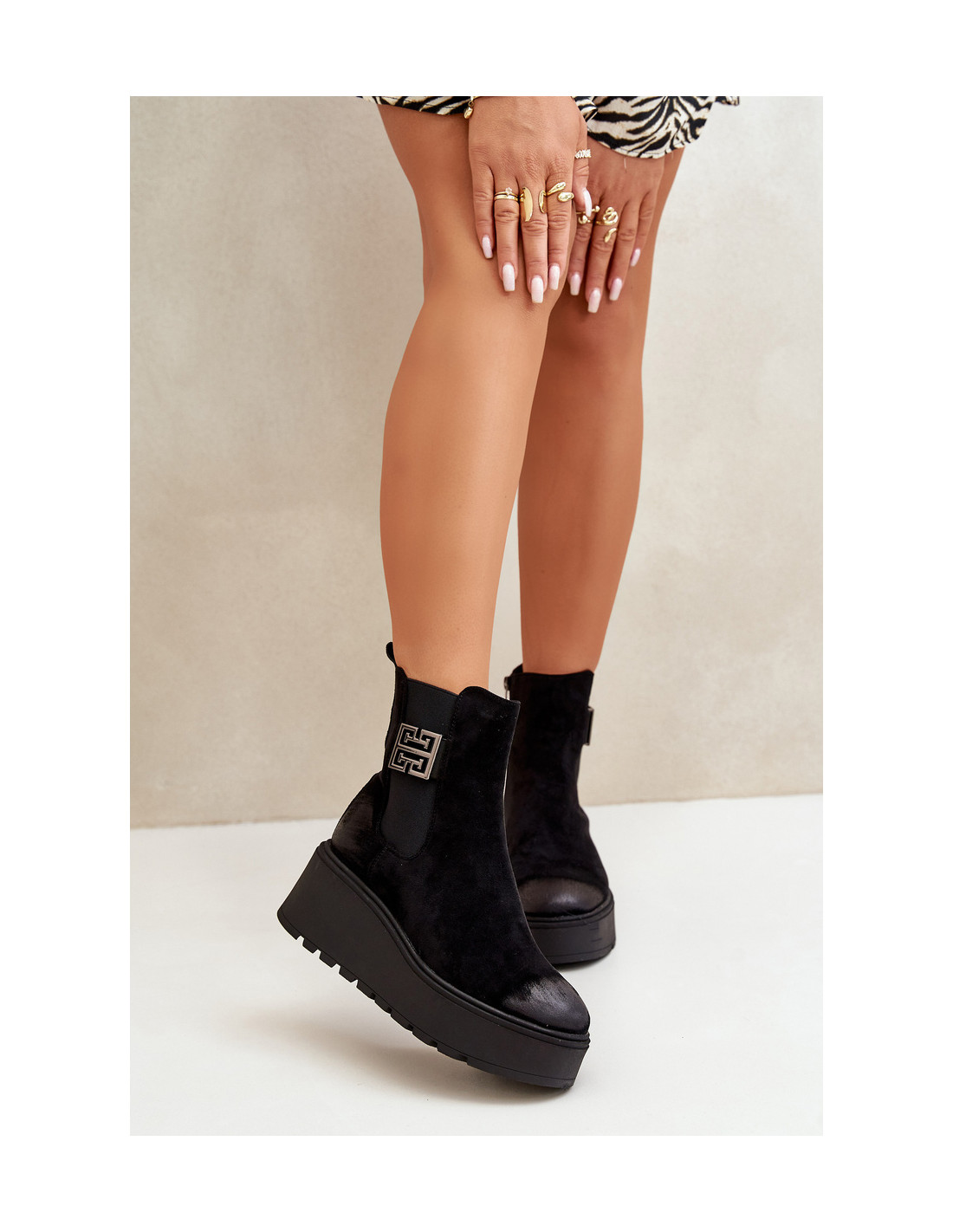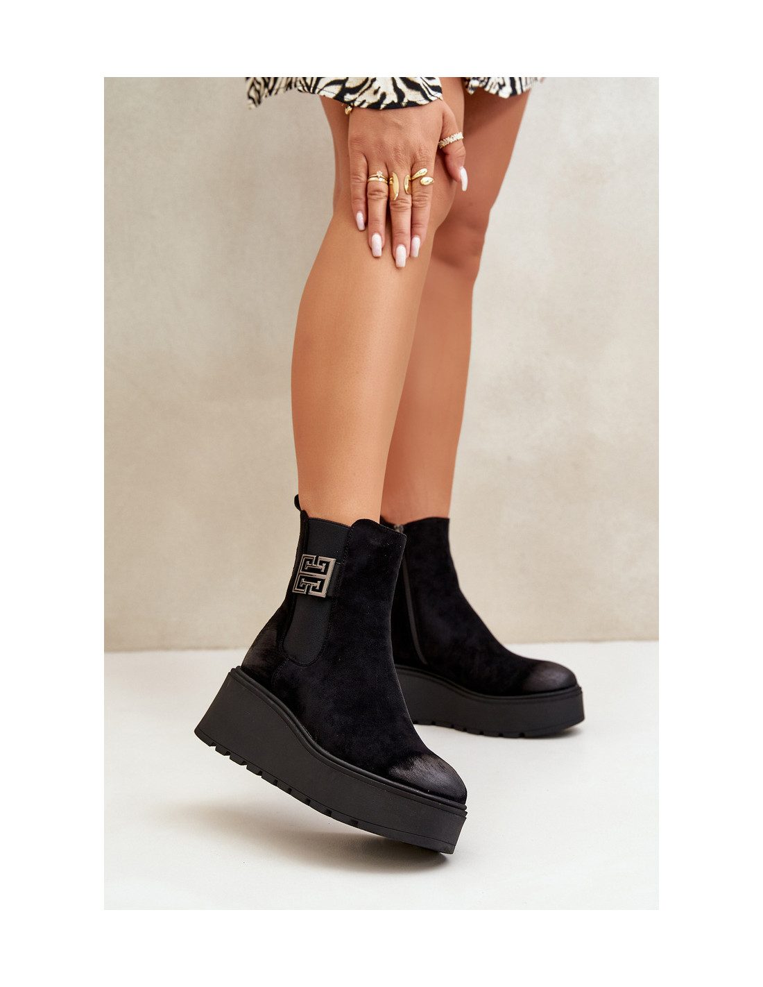 Batai iš minkštos ekologiškos zomšos, kurie puikiai derina stilių ir patogumą. Ant platformos ir stabilaus pleišto jie užtikrina patogumą dėvėti visą dieną. Vidus apšiltintas veltiniu. Užsegamas užtrauktuku, todėl lengva užsidėti ir greitai nusiimti. Suapvalinti kojų pirštai. Šis modelis puikiai papildys daugybę skirtingų stilių, suteikdamas jiems elegancijos ir komforto. Renkantis dydį, vadovaukitės dydžių lentele