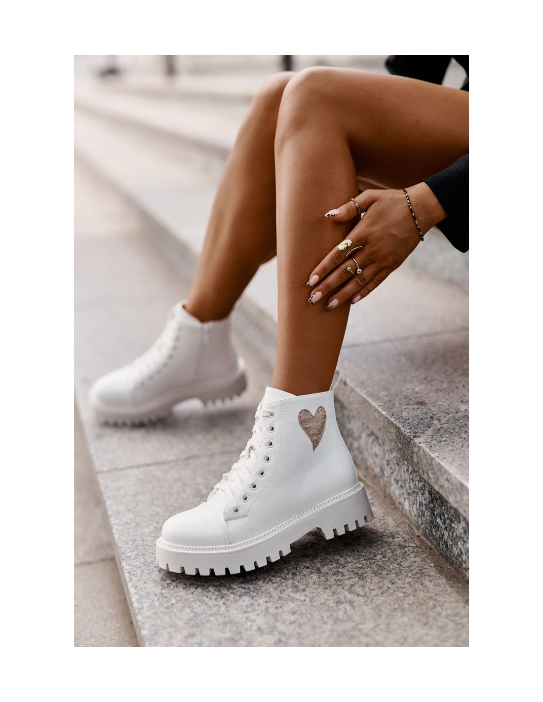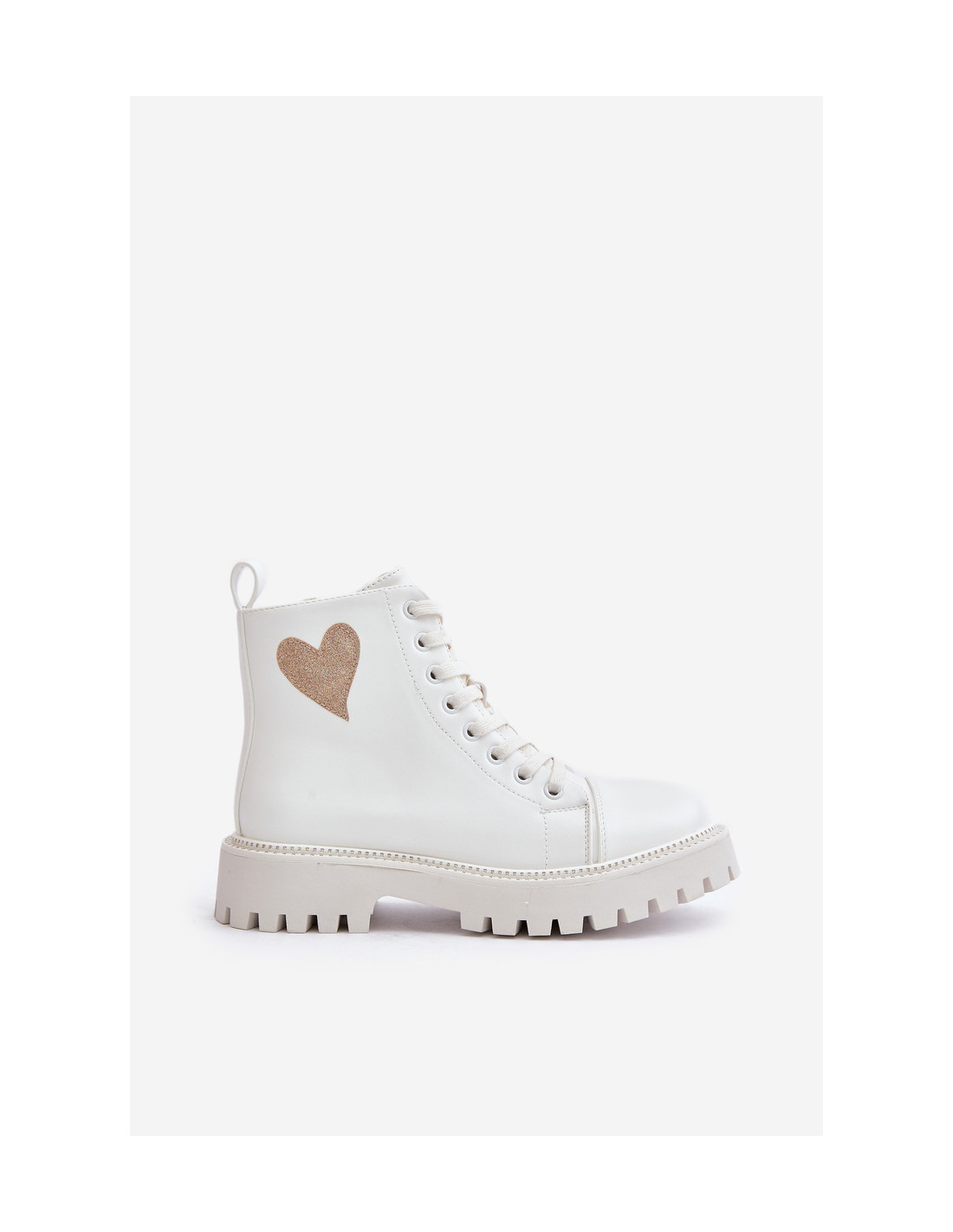 Moteriški batai su užtrauktuku ir dekoratyvine širdele, baltos spalvos Obeena