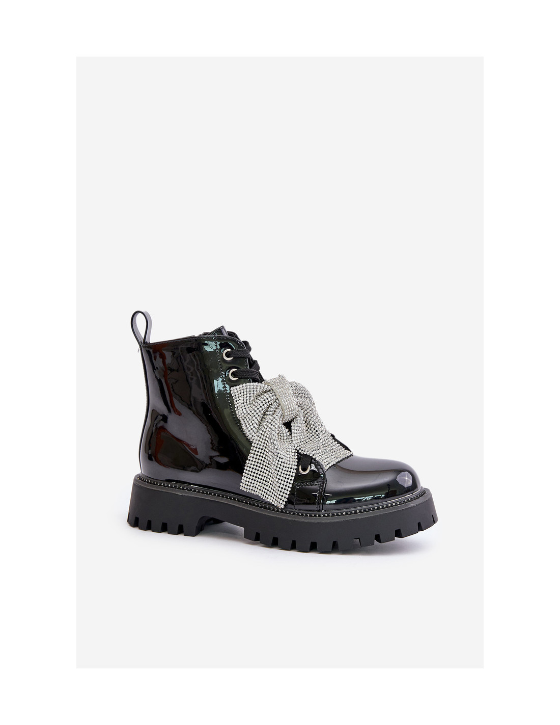 Plokšti kulkšnies batai sujungia komfortą ir stilių, puikiai tinka kasdieniam ir išskirtiniam stiliui. Suapvalinti pirštai suteikia jiems klasikinę išvaizdą. Užtrauktukas leidžia lengvai greitai užsidėti, o papildomi raišteliai leidžia puikiai priglusti prie pėdos. Pagrindinis šio modelio privalumas – priekyje dedamas lankelis su cirkoniais, suteikiantis elegantiško ir moteriško akcento, patraukiantis dėmesį ir pabrėžiantis šios avalynės išskirtinumą. Renkantis dydį, vadovaukitės dydžių lentele.