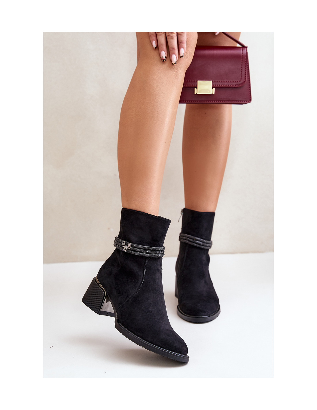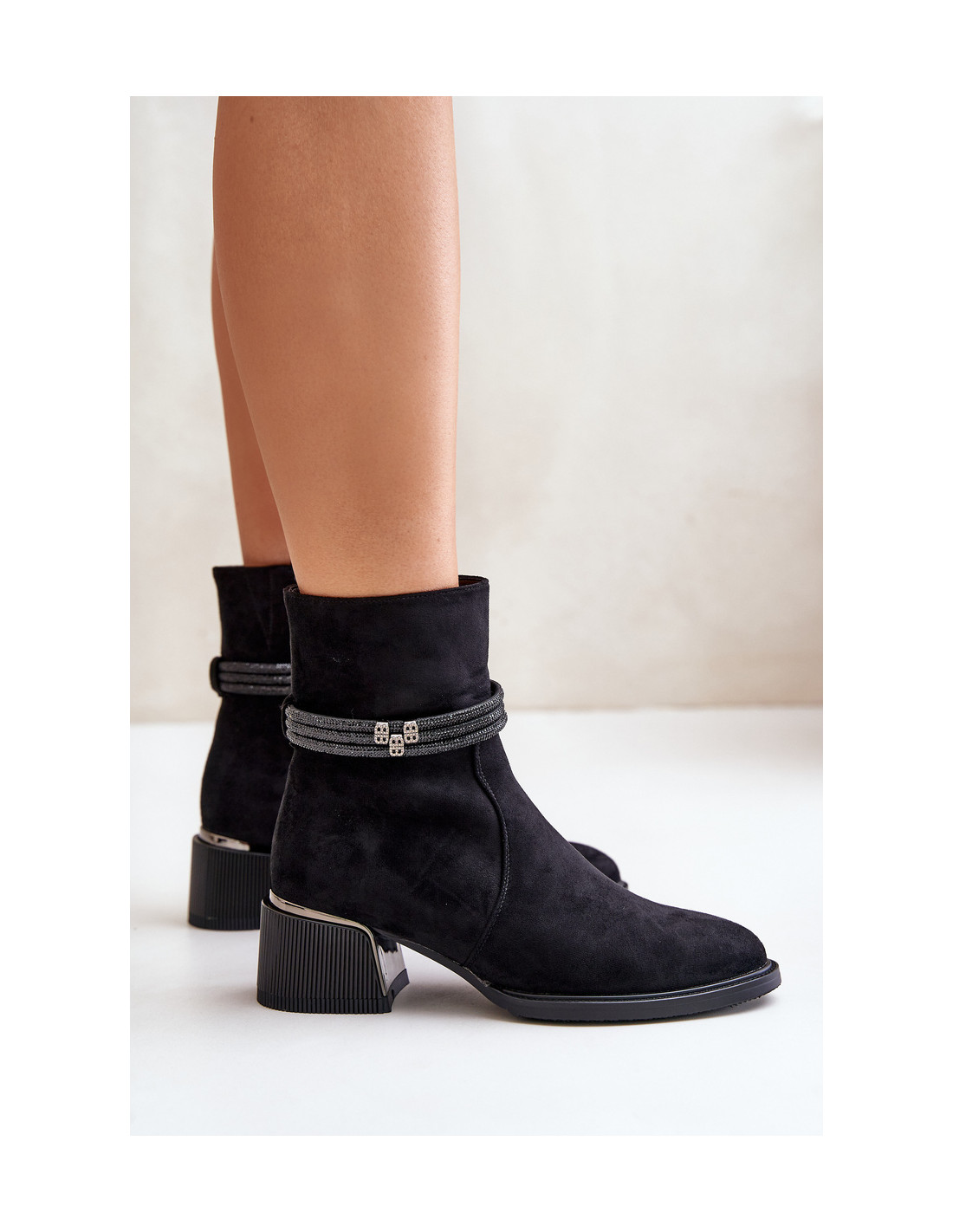 Moteriški batai iš aukštos kokybės eko zomšos. Nustatykite ant žemo kulno. Migdoliniai pirštai. Vidus apšiltintas batų antklode. Užsegamas užtrauktuku. Pagrindinis šio modelio privalumas – blizgios juostelės viršutinėje dalyje. Renkantis dydį, vadovaukitės dydžių lentele.