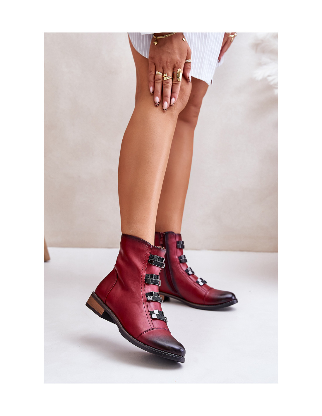 Jezzi kulkšnies batai iš eko odos, kurie derina stilių ir patogumą. Nustatyti ant plokščio kulno, suapvalintais pirštais suteikia patogumo kasdieniam dėvėjimui. Užsegamas užtrauktuku, todėl patogu užsidėti ir nusiimti. Šis modelis išsiskiria dekoratyvinėmis elastinėmis juostomis priekyje. Vidus apšiltintas batų antklode. Šie batai yra puikus pasirinkimas rudens ir žiemos stiliui. Renkantis dydį, vadovaukitės dydžių lentele.