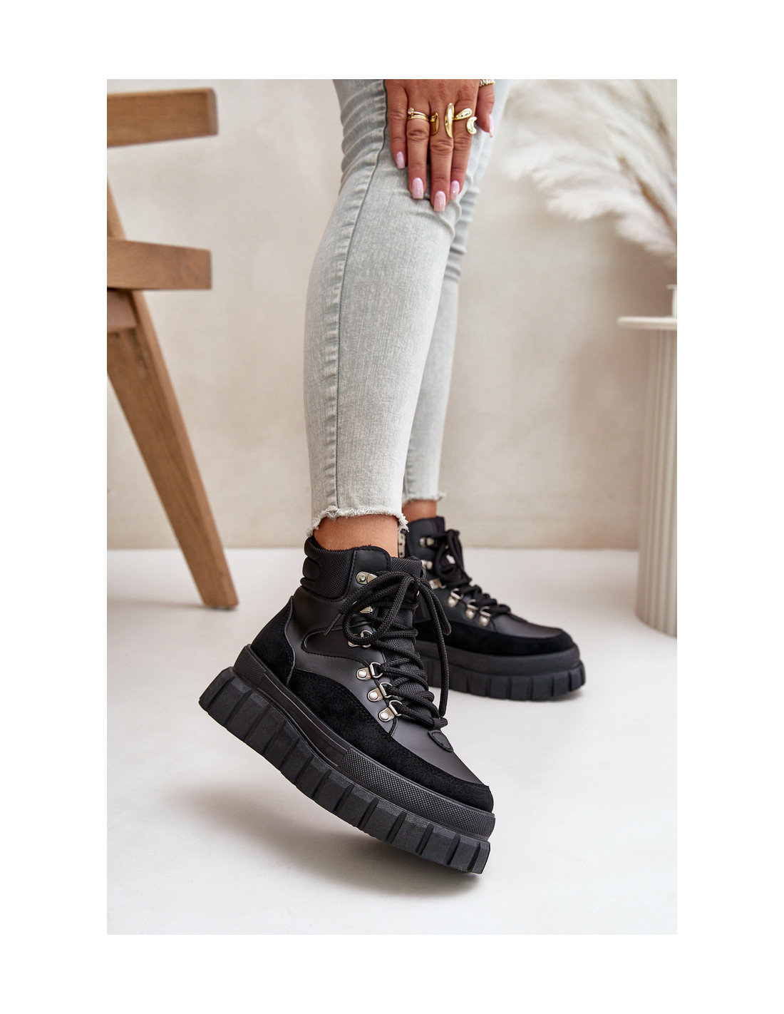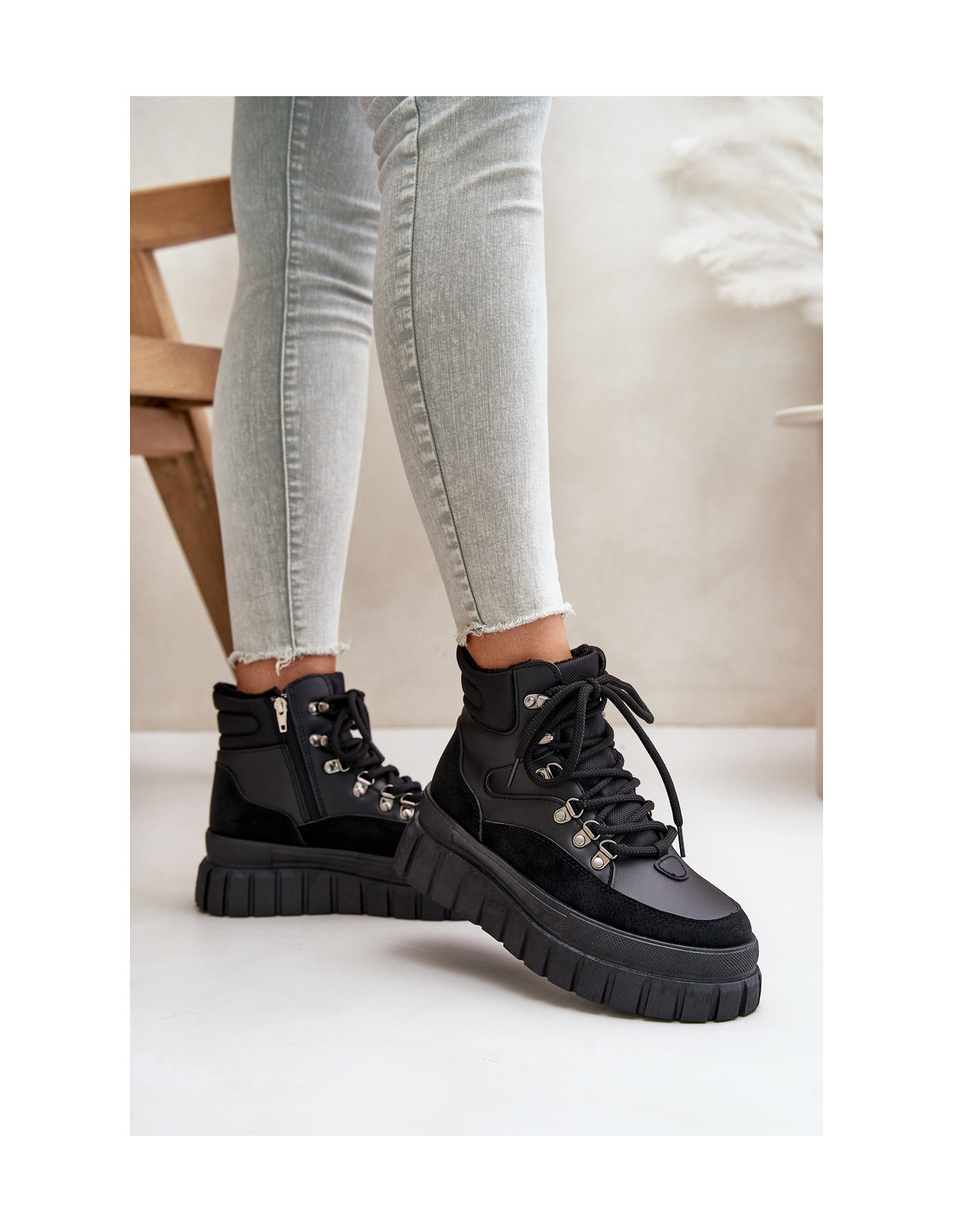 Moteriški batai iš eko odos, ant masyvios platformos, kuri puikiai izoliuoja nuo šaltos žemės. Šis modelis su raišteliu ir papildomai užsegamas užtrauktuku. Apšiltinimas batų antklodės pavidalu suteiks komforto ir šilumos. Tai avalynė, kuri ne tik stilinga, bet ir funkcionali. Puikiai tinka moterims, kurios vertina komfortą ir madingą išvaizdą. Renkantis dydį, vadovaukitės dydžių lentele.