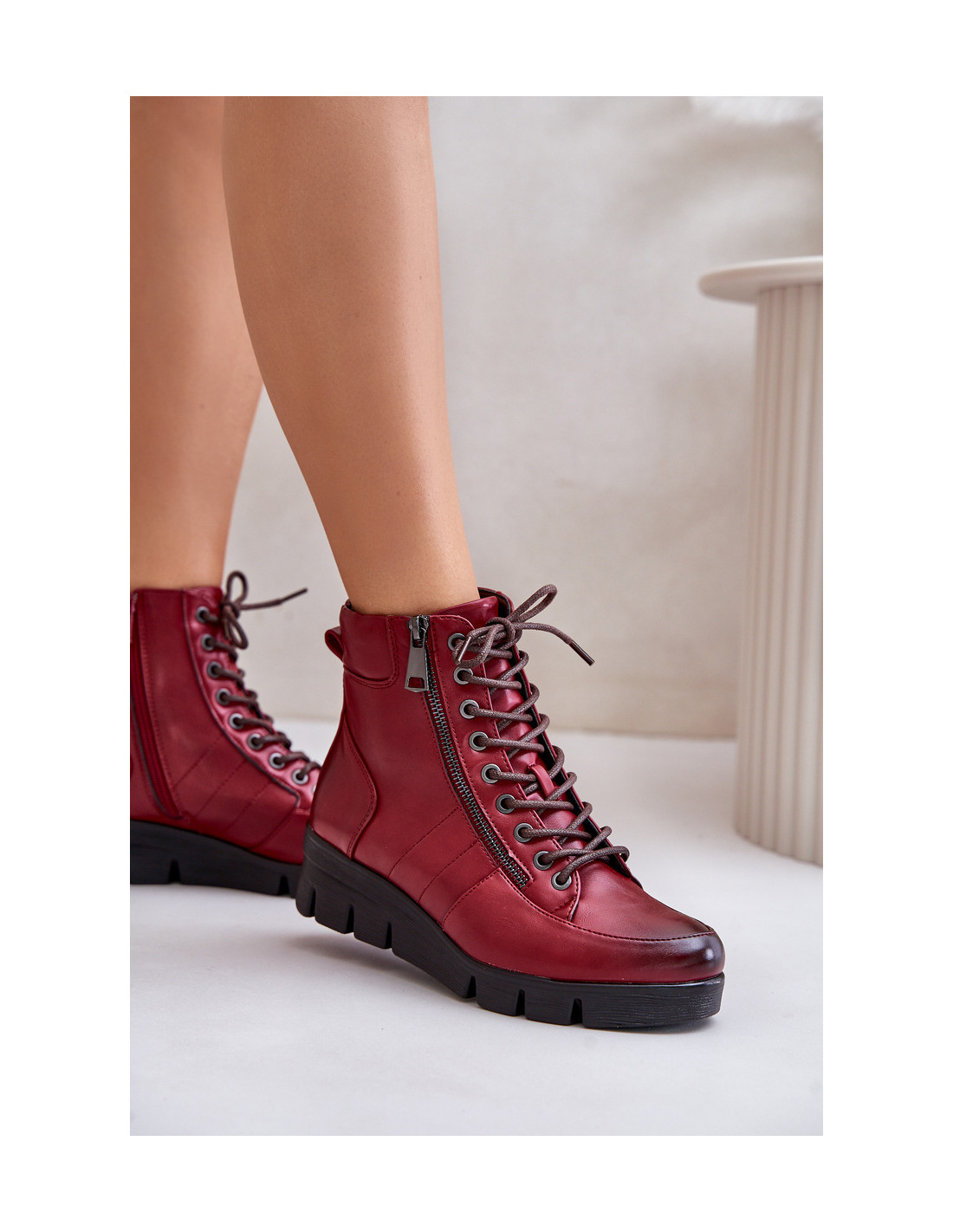 Lengvi, izoliuoti moteriški kulkšnies batai ant platformos ir pleišto, bordo, Savindria