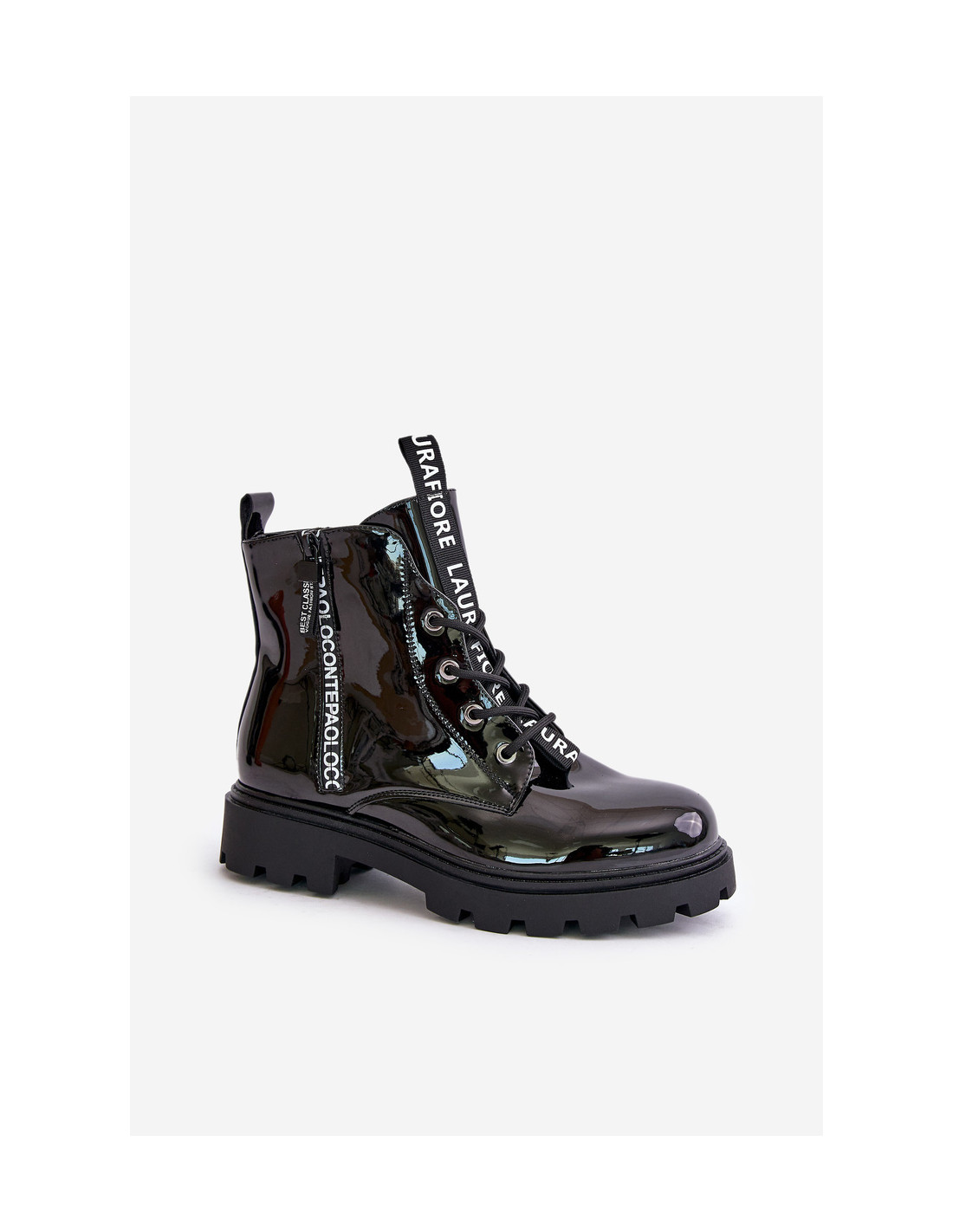 Patentuoti moteriški batai, izoliuoti, su užrašais, juodi, „Zinfrey“