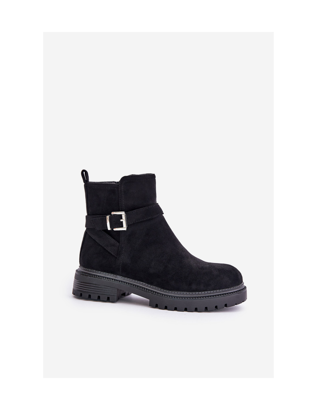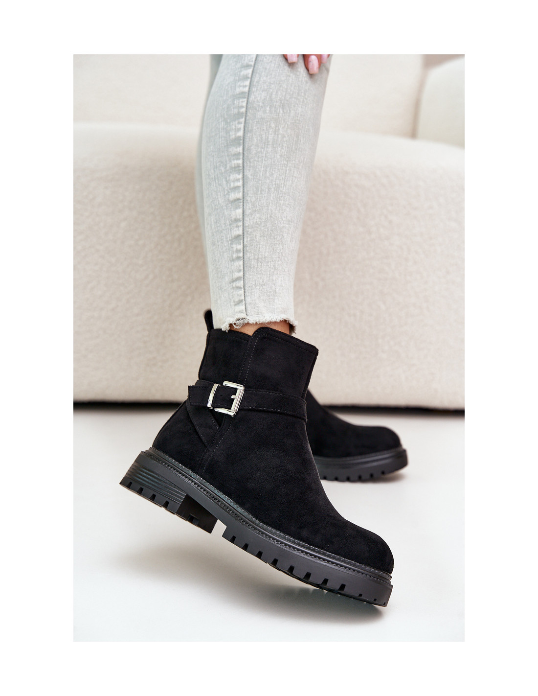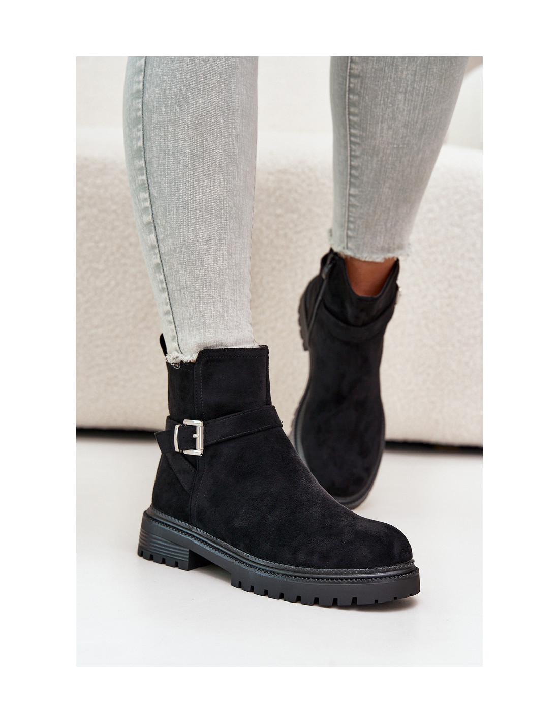 Izoliuoti ekologiški zomšiniai batai su užtrauktuku ir sagtimi, juoda Zinovelle
