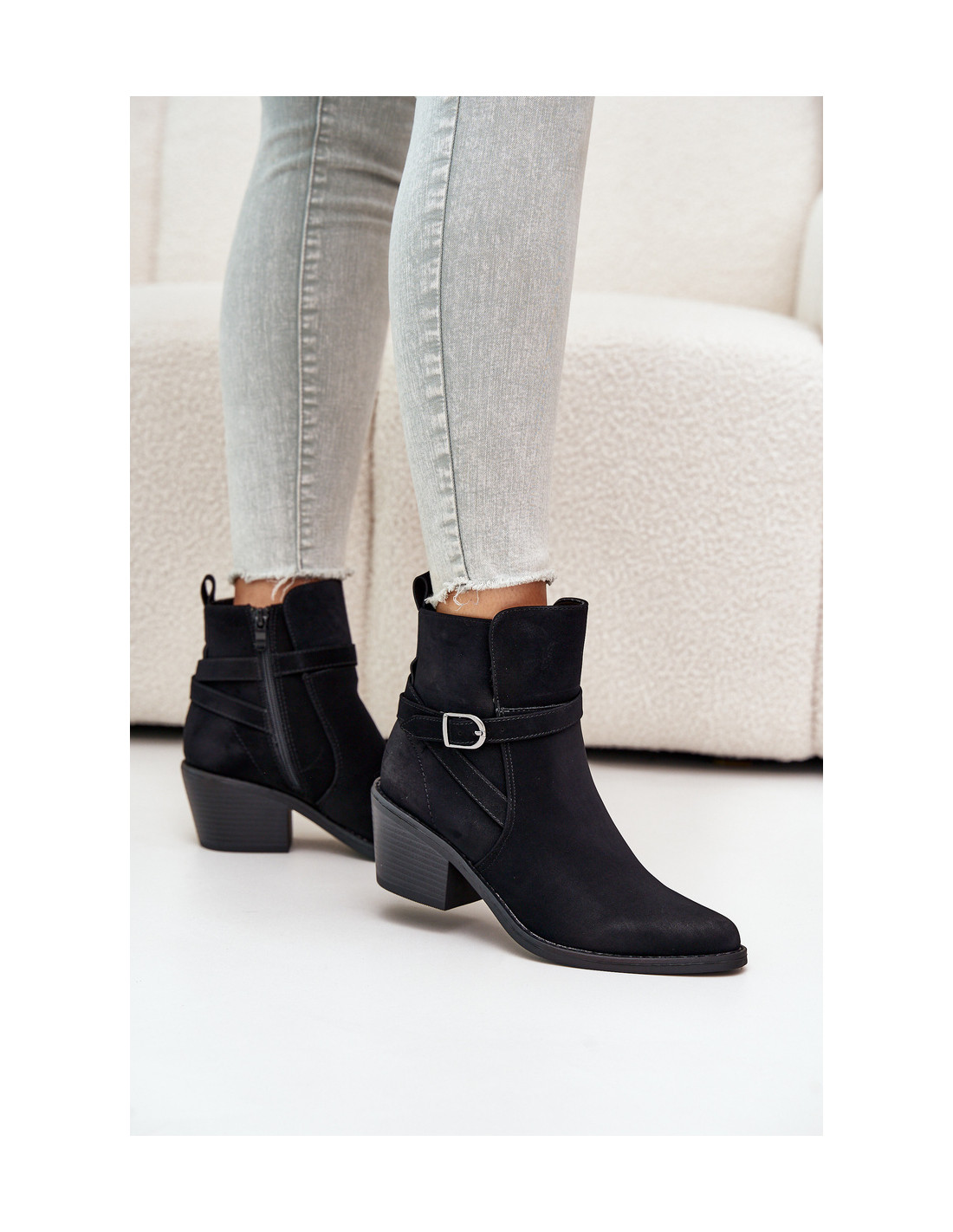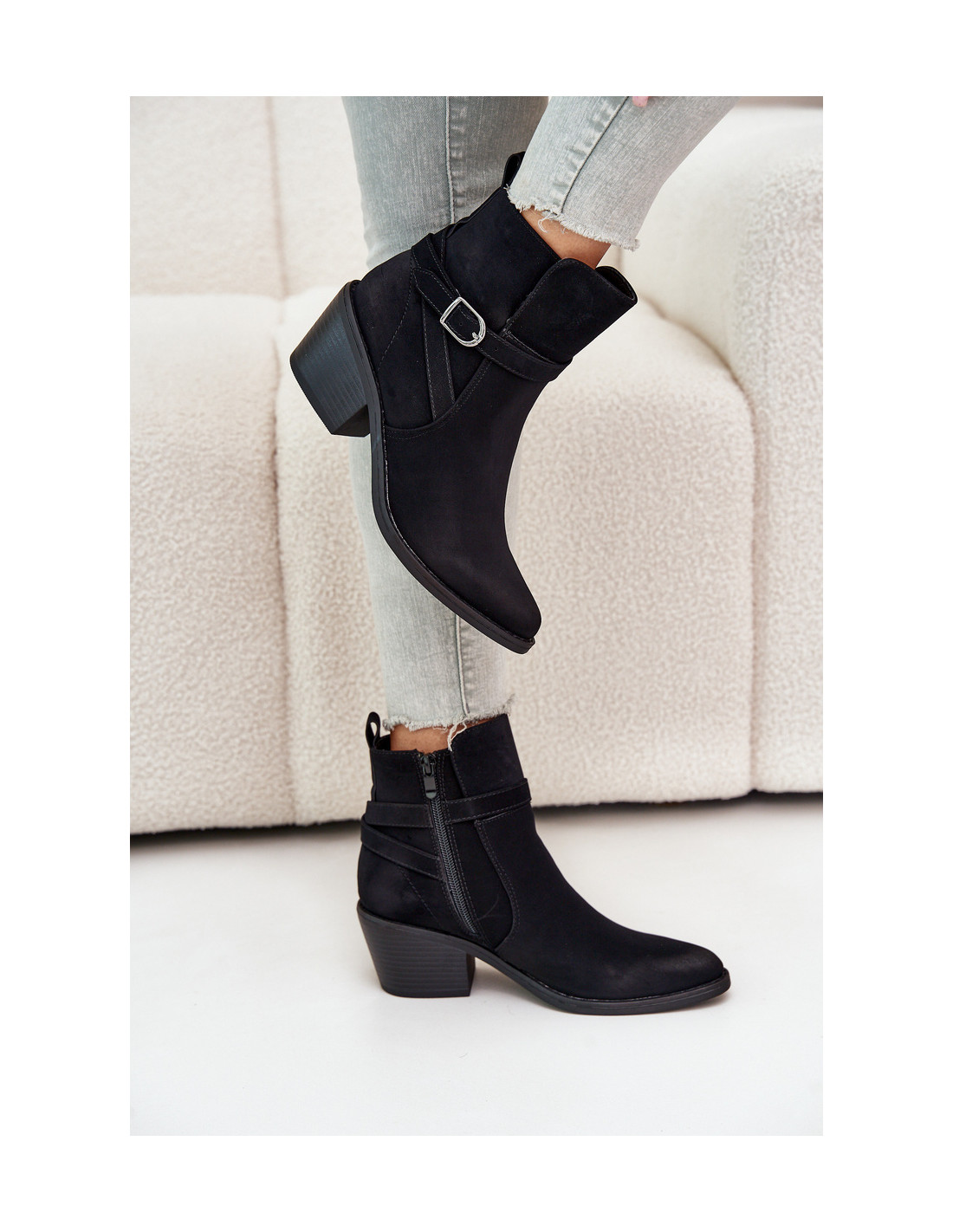 Kaubojiško stiliaus batai iš ekologiškos zomšos. Nustatyti ant kulno stulpelio pavidalu. Vidus apšiltintas batų antklode. Užsegamas užtrauktuku. Smailūs pirštai optiškai lieknins kojas. Šis madingas stilius turėtų būti jūsų! Renkantis dydį, vadovaukitės dydžių lentele.
