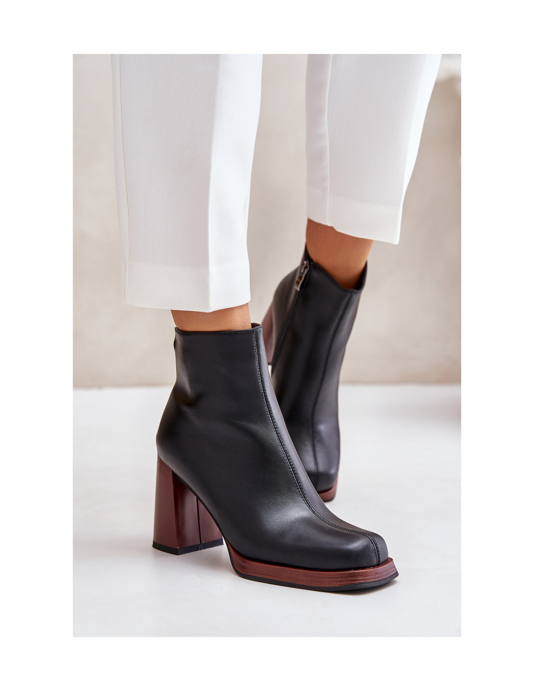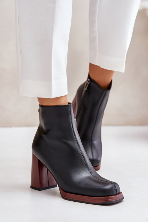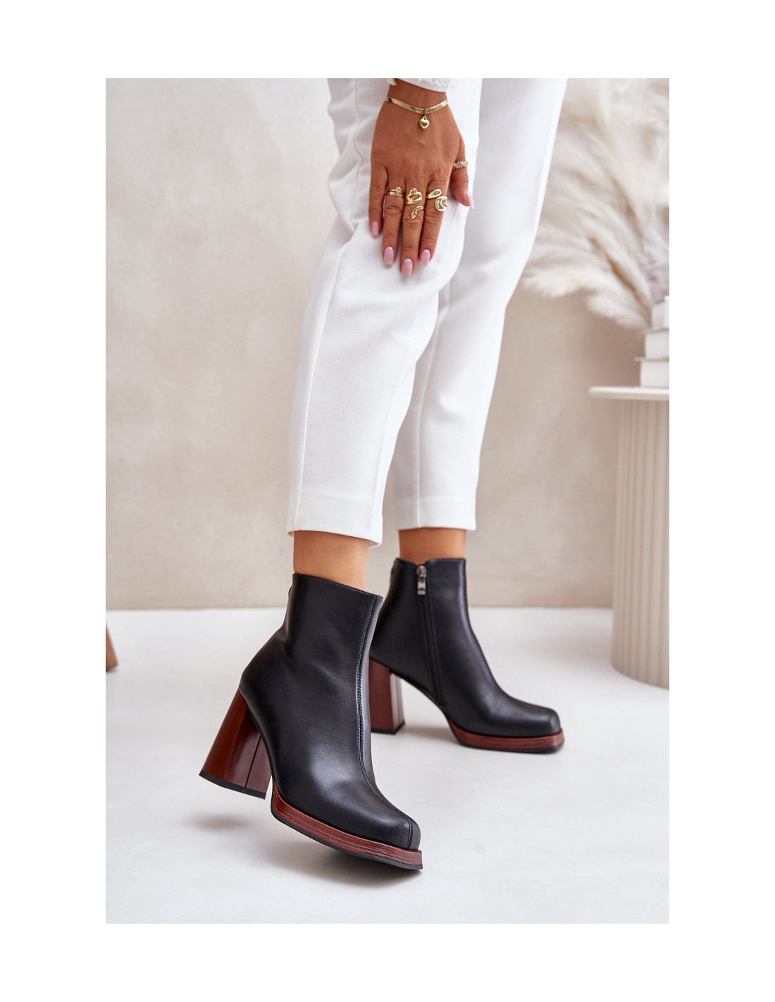 Moteriški batai iš natūralios odos. Nustatyti ant kulno stulpelio pavidalu. Suapvalinti kojų pirštai. Viršutinė dalis iki kulkšnies. Užsegamas užtrauktuku. Nedidelė, dekoratyvi detalė nugaroje. Batų vidus apšiltintas minkšta batų antklode. Šis elegantiškas stilius puikiai papildys daugelį rudens ir žiemos stilių! Renkantis dydį, vadovaukitės dydžių lentele.
