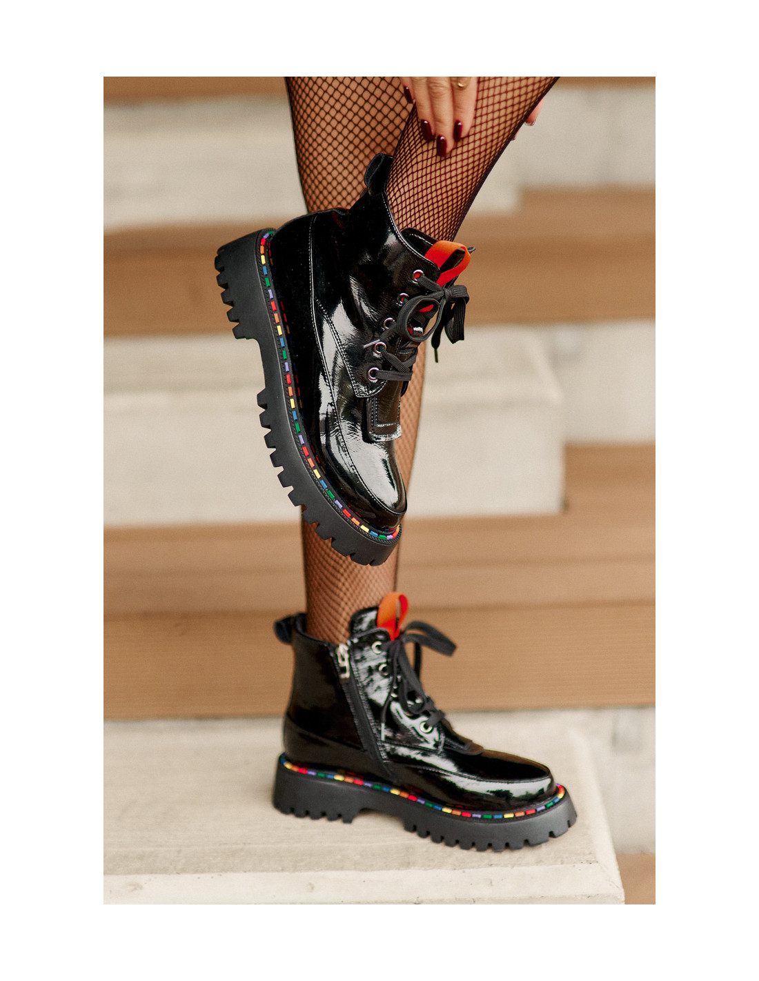 Natūralios odos batai su spalvingais elementais – stilingas pasirinkimas vertinantiems originalumą. Viršutinė dalis virš kulkšnies. Modelis yra suvarstytas ir turi užtrauktuką, todėl jį lengviau užsidėti ir užsidėti. Batų viduje esanti izoliacija garantuoja šiluminį komfortą šaltesnėmis dienomis, o unikalūs, spalvingi akcentai suteikia jiems savitą, madingą charakterį. Puikiai tinka kasdieniam naudojimui, norintiems išsiskirti stilinga išvaizda. Renkantis dydį, vadovaukitės dydžių lentele.