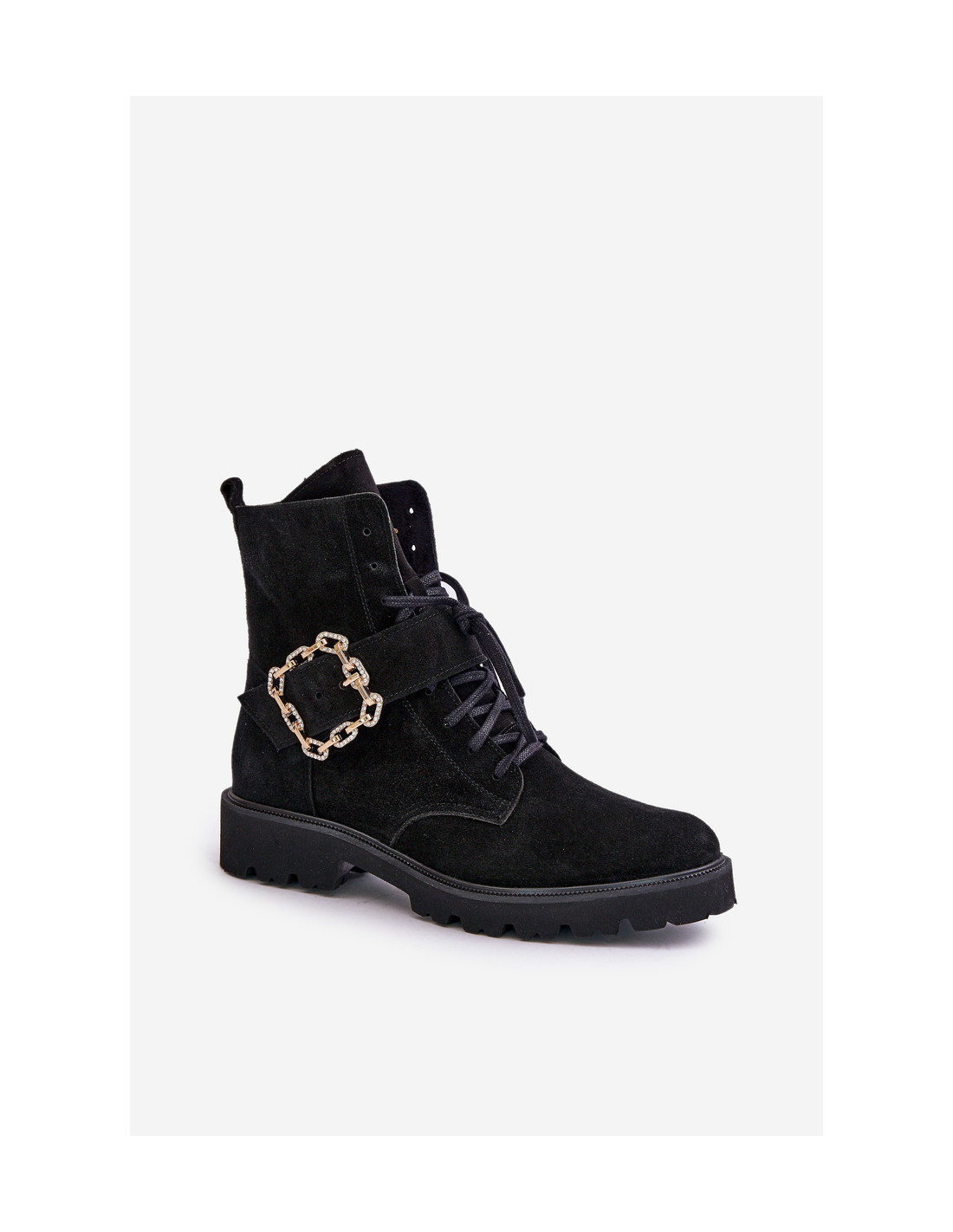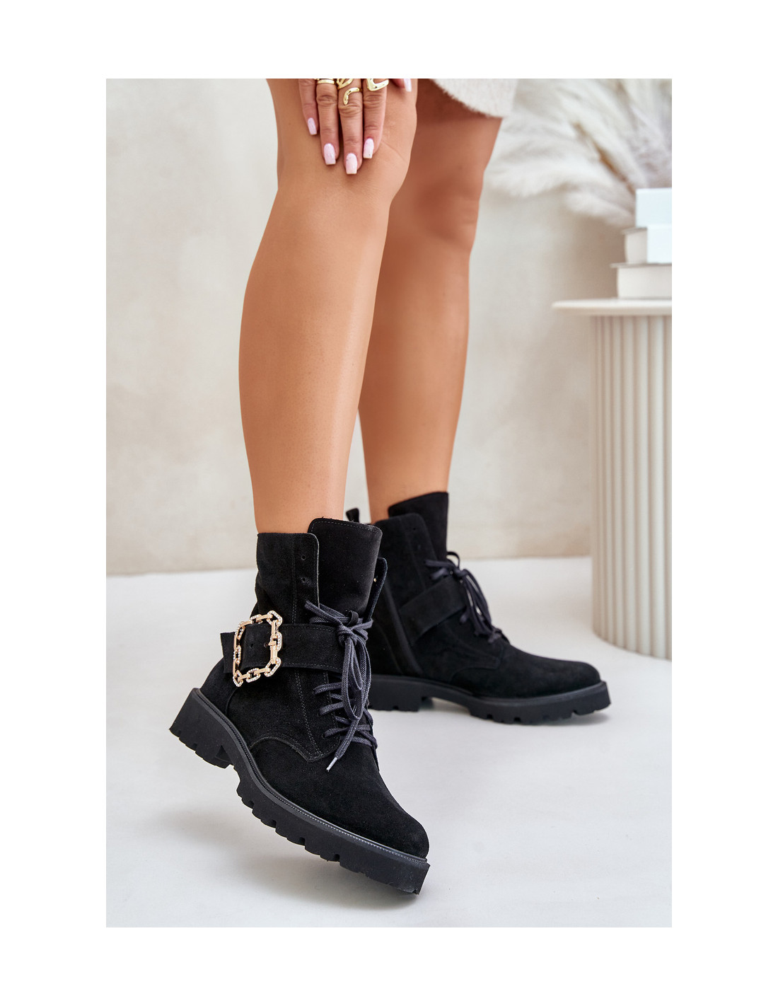 Zazoo 2951 zomšiniai kulkšnies batai su dekoratyvine sagtimi, juodi