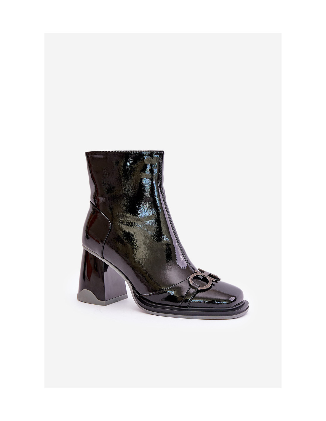 Moteriški batai iš lakinės eko odos – stilingas pasirinkimas šaltesnėms dienoms. Užtaisyti ant stabilaus blokinio kulno, jie suteikia siluetui elegancijos ir šiuolaikiškumo. Modelis turi kvadratinius pirštus, o priekinė puošyba pabrėžia jo madingą charakterį. Apšiltinti batų antklode, jie suteikia komforto ir šilumos, o užtrauktukas leidžia lengvai greitai apsiauti. Puikiai tinka elegantiškam ir formaliam stiliui. Renkantis dydį, vadovaukitės dydžių lentele.