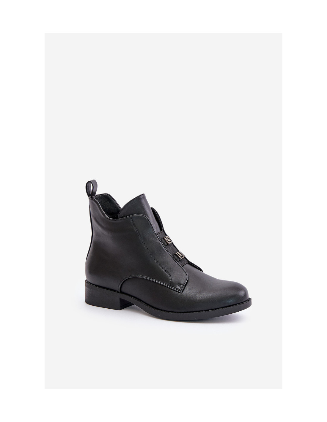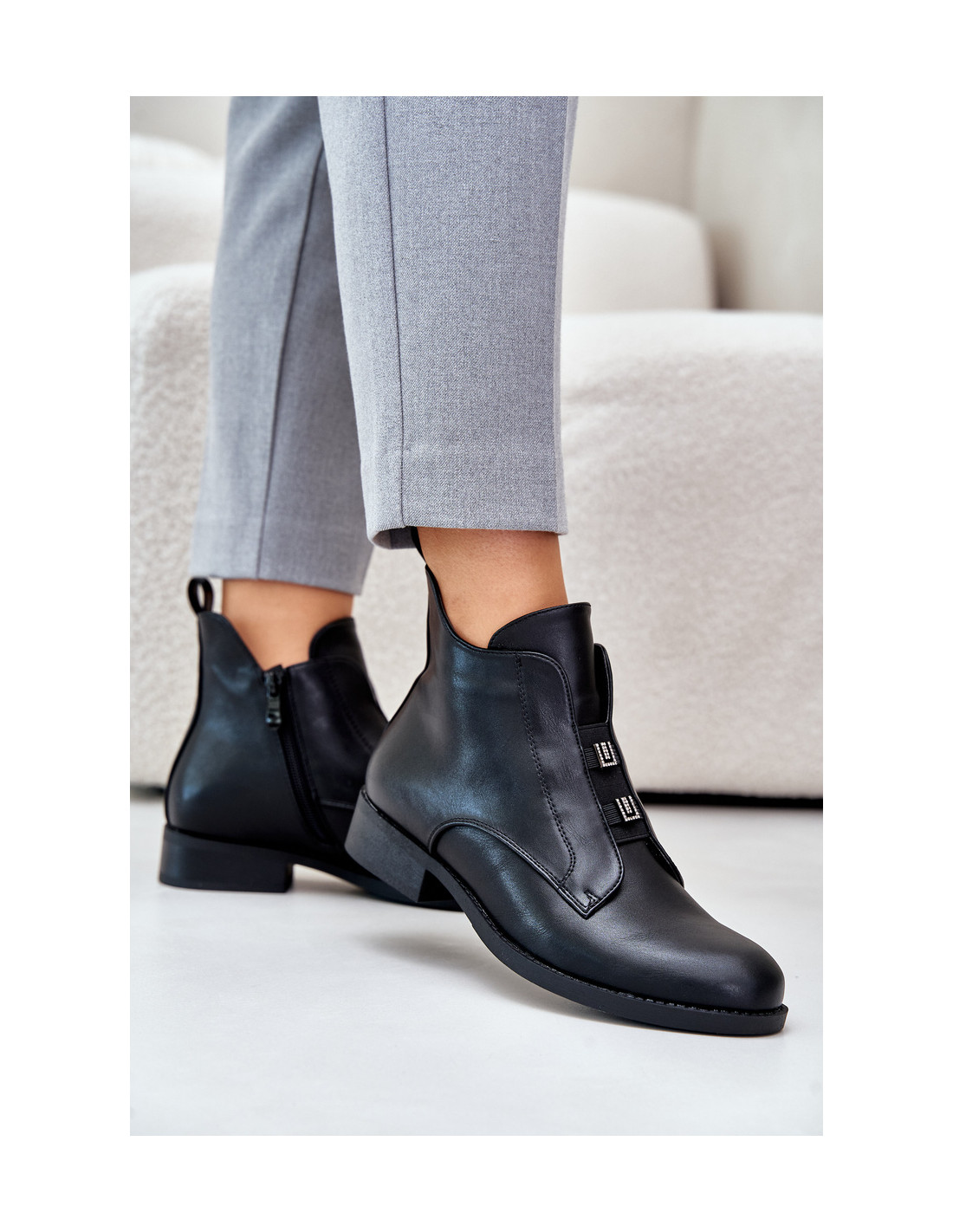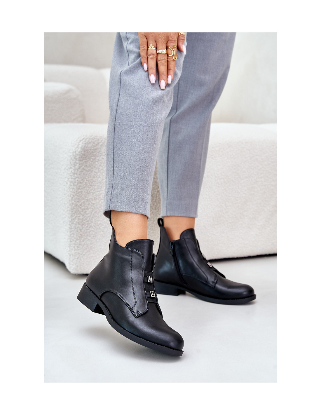 Moteriški batai iš eko odos – tai stiliaus ir komforto derinys, puikiai tinkantys šaltesnėms dienoms. Ant plokščio kulno jie garantuoja komfortą dėvint. Modelis turi apvalius pirštus ir dvi subtilias dekoracijas priekyje, kurios suteikia elegantiškumo. Užtrauktukas leidžia lengvai užsidėti, o vidus apšiltintas batų antklode, kad būtų šiluma ir patogumas. Puikiai tinka kasdieniam stiliui. Renkantis dydį, vadovaukitės dydžių lentele.