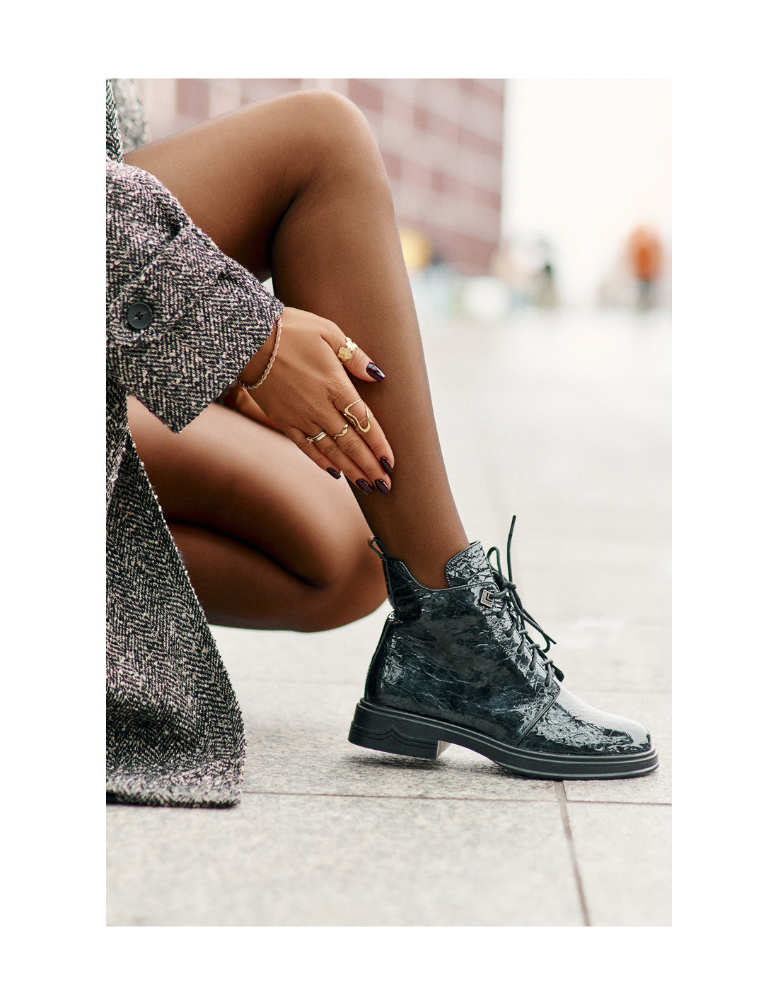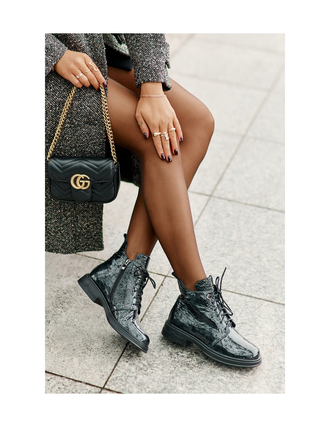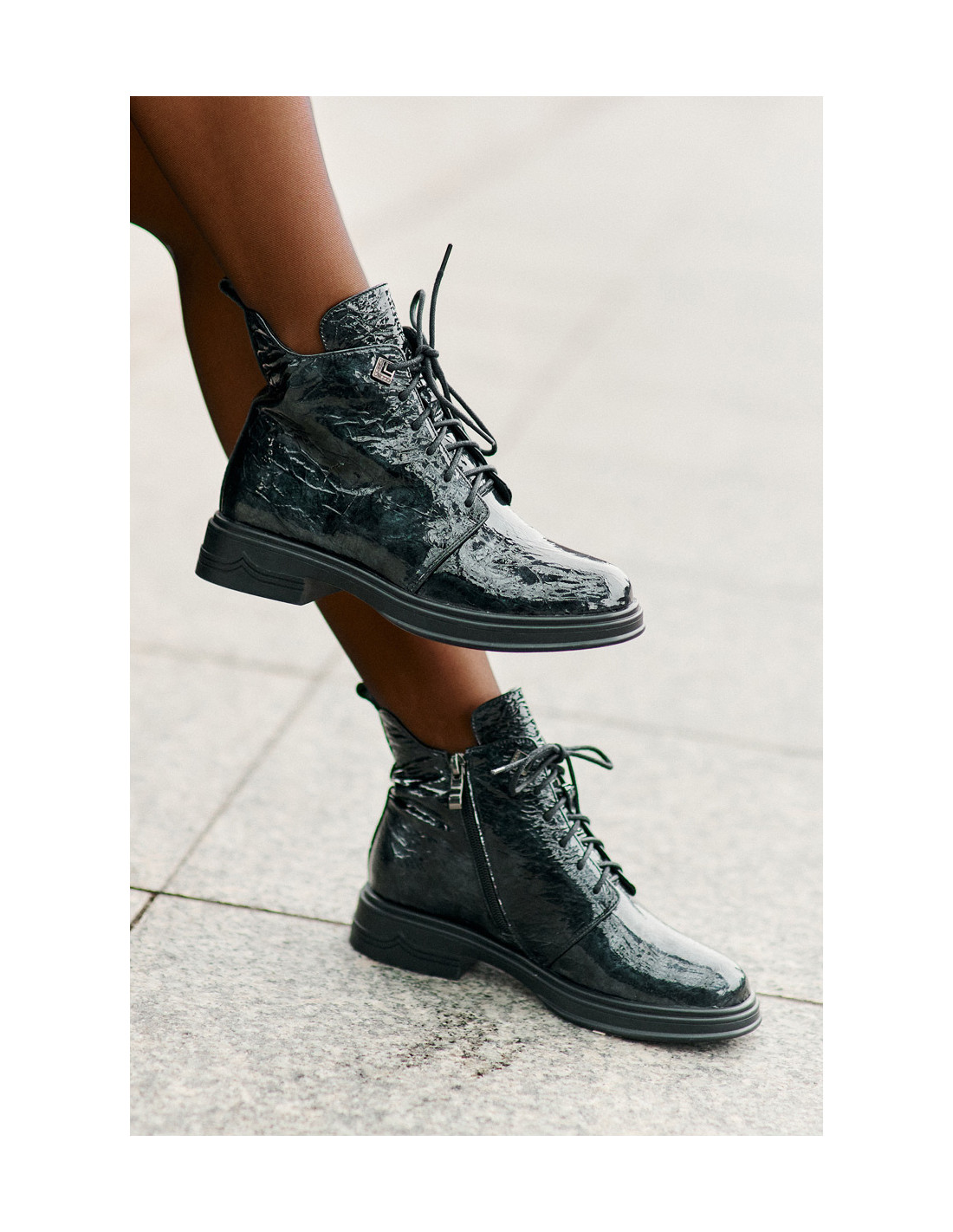 Elegantiški natūralios odos kulkšnies batai yra stilingas pasirinkimas šaltesnėms dienoms. Ant plokščio kulno jie suteikia komforto, o suvarstymo ir užtrauktuko derinys leidžia lengvai užsimauti ir priglusti prie pėdos. Įspaudas ant viršutinės dalies suteikia jiems rafinuotą, originalų vaizdą. Izoliuotas interjeras garantuoja šilumą, todėl šie batai puikiai tinka tiek kasdieniam, tiek elegantiškesniam stiliui. Renkantis dydį, vadovaukitės dydžių lentele.