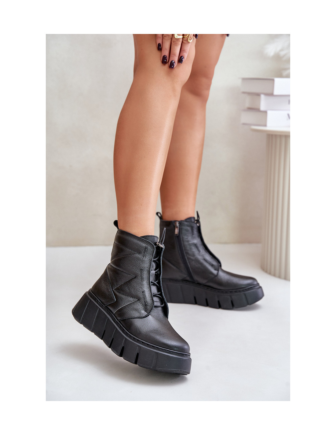 Moteriški batai iš natūralios odos, pastatyti ant platformos ir pleišto, yra puikus pasirinkimas šaltesnėms dienoms. Apšiltinti veltiniu, jie suteikia šilumą ir komfortą. Dėl modelio su užtrauktuku juos lengva apsiauti, o dėl elegantiško dizaino aulinukai puikiai tinka tiek kasdieniam, tiek stilingesniam stiliui. Renkantis dydį, vadovaukitės dydžių lentele