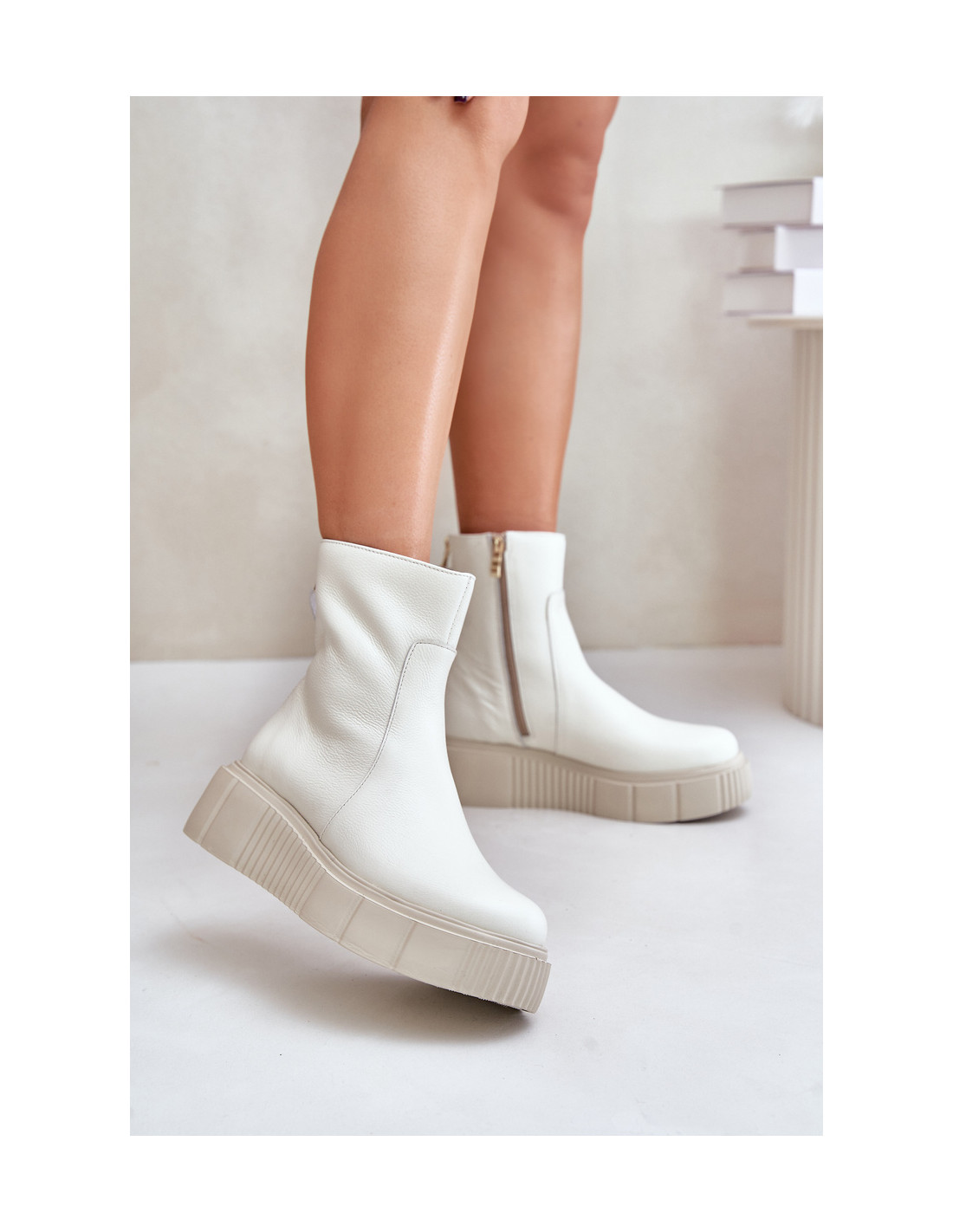 Moteriški kulkšnies batai pagaminti iš aukštos kokybės natūralios odos. Pastatykite ant masyvios platformos su subtiliu pleištu. Viršus šone užsegamas užtrauktuku, o nugaroje – dekoratyvinis užtrauktukas. Be to, batai turi standintą kulną. Vidus apšiltintas batų antklode. Šis modelis tikrai tiks prie daugelio rudens stilių! Renkantis dydį, vadovaukitės dydžių lentele