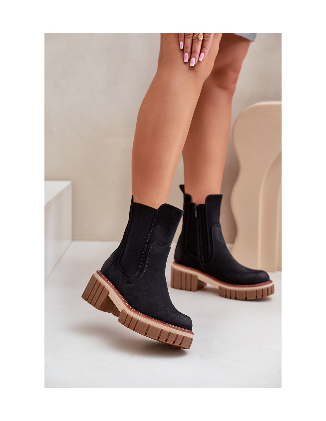 Chelsea batai, pagaminti iš ekologiškos odos, pastatyti ant masyvaus blokinio kulno, yra stilingas pasiūlymas šaltesnėms dienoms. Suapvalinti pirštai suteikia jiems klasikinį charakterį, o batų antklode apšiltintas interjeras suteikia komforto ir šilumos. Modelis užsegamas užtrauktuku, todėl jį lengva greitai užsidėti. Puikiai tinka kasdieniam stiliui! Renkantis dydį, vadovaukitės dydžių lentele.