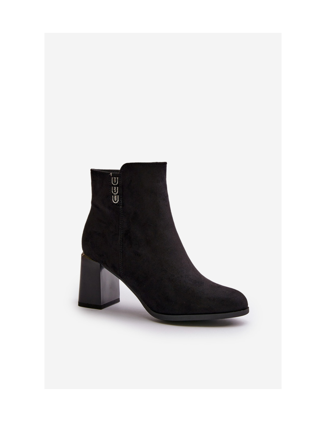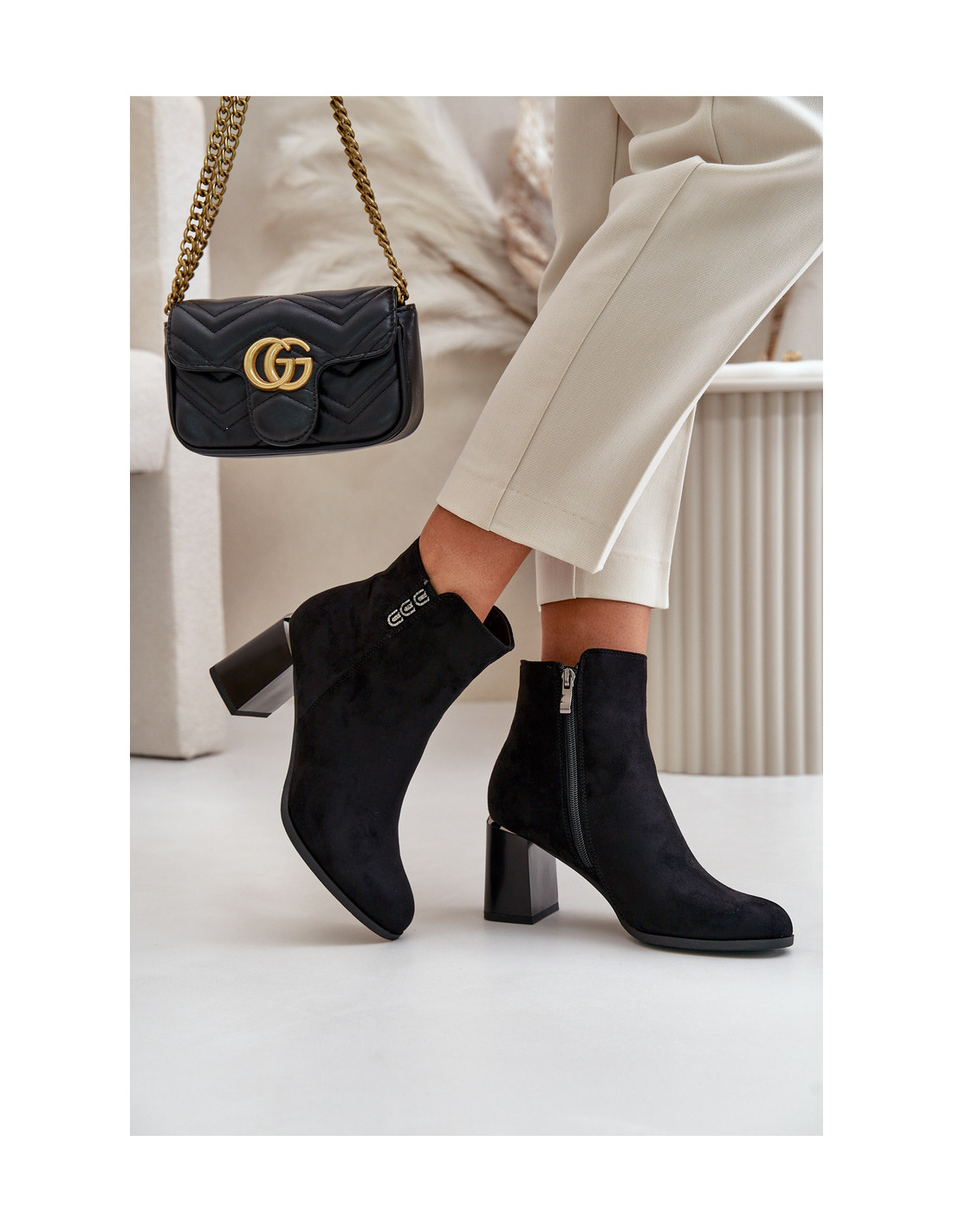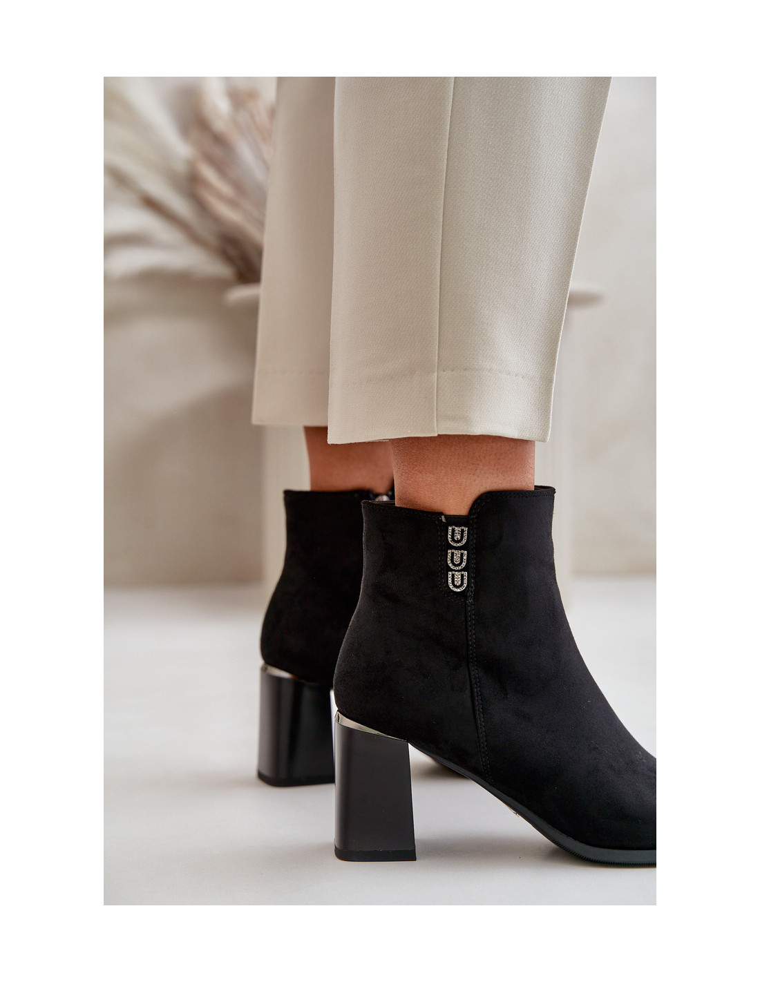 Apšiltinti ekologiški zomšiniai moteriški batai ant aukštakulnių, užsegami užtrauktuku, juoda erilija