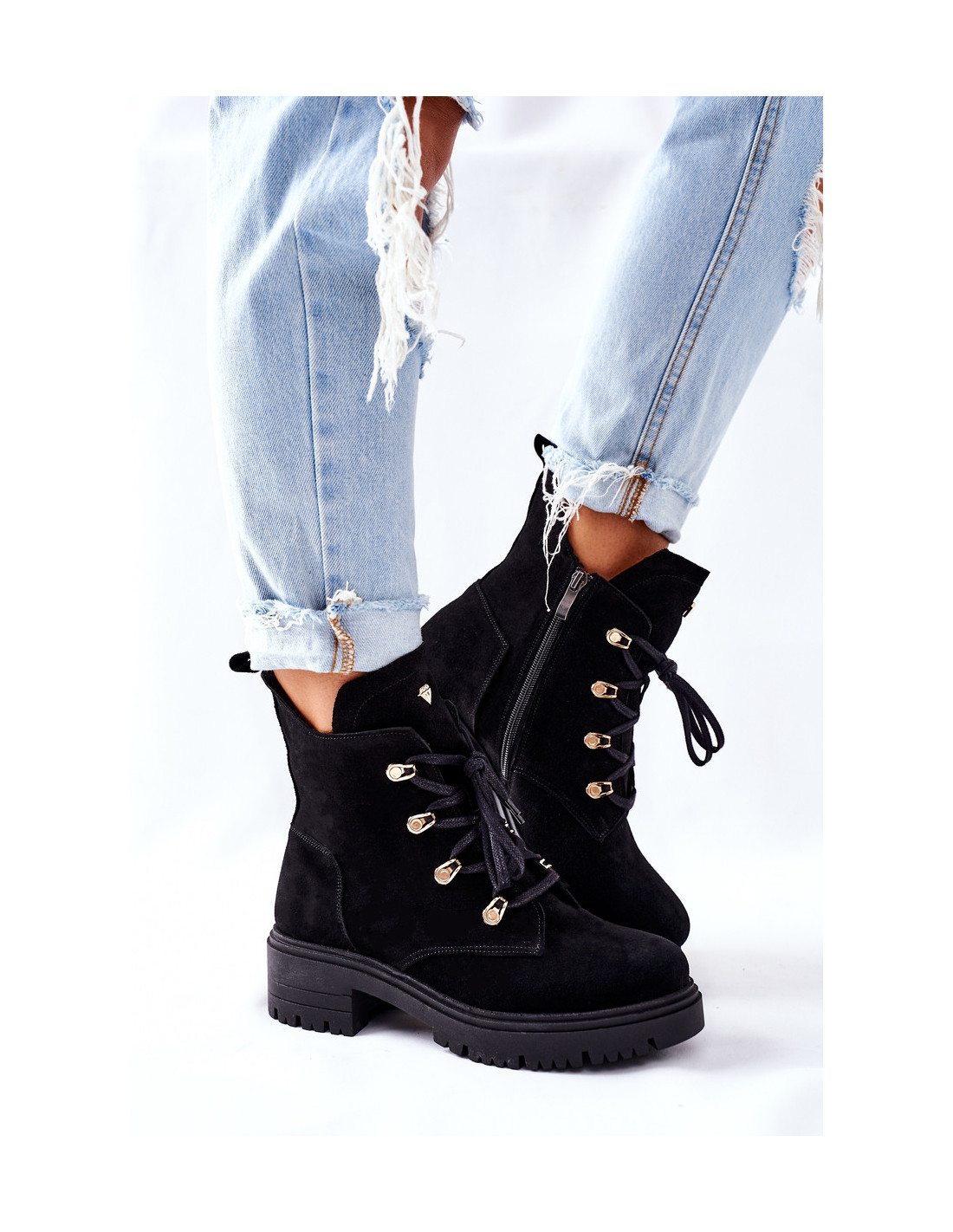 Šie batai yra pagaminti iš natūralios zomšos. Aukso spalvos logotipo puošmena gražiai pabrėžia jų unikalų stilių. Batai turi subtilų plokščią kulną. Renkantis dydį, naudokite dydžių lentelę.