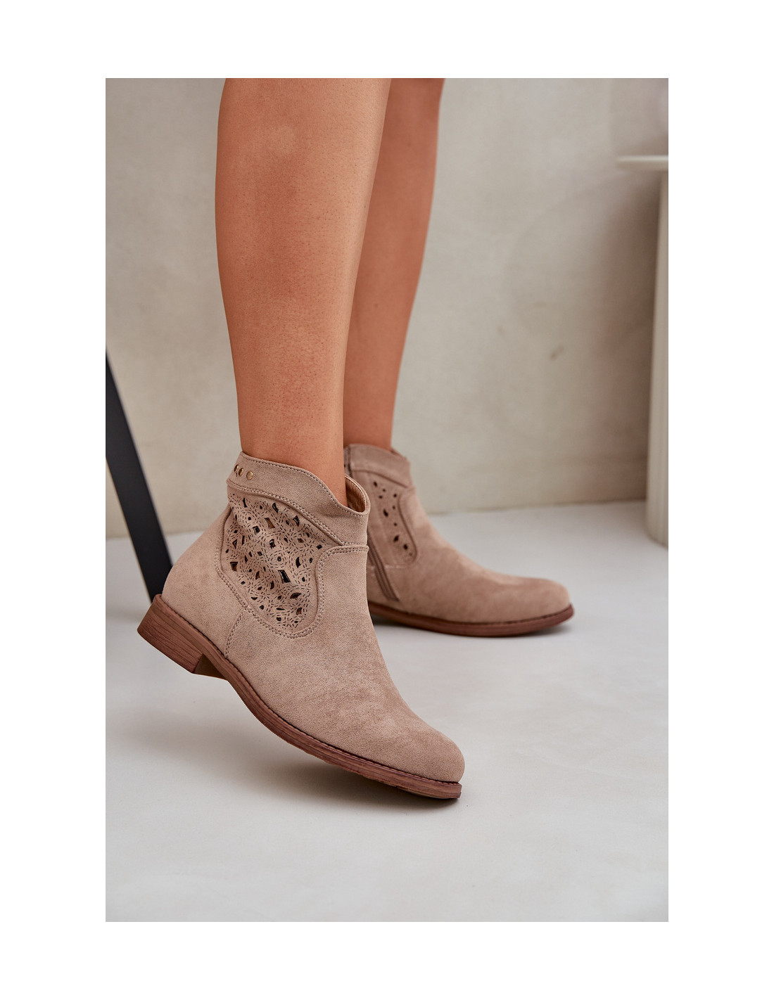 Moteriški S.Barski prekės ženklo kulkšnies batai, pagaminti iš ekologiškos zomšos, yra elegantiškas ir patogus pasiūlymas šaltesnėms dienoms. Ant plokščio kulno jie suteikia stabilumo ir komforto visą dieną. Užsegamas užtrauktuku, todėl juos lengviau užsidėti. Suapvalinti pirštai suteikia subtilaus charakterio, o ažūrinė viršutinė dalis suteikia lengvumo ir modernumo. Šie batai yra puikus pasirinkimas kasdieniam stiliui! Renkantis dydį, vadovaukitės dydžių lentele.