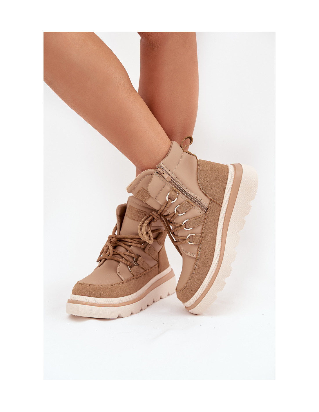 Moteriški izoliuoti aulinukai iki kulkšnių – puikus pasirinkimas žiemos dienoms. Jie yra ant platformos, todėl užtikrina komfortą ir stabilumą einant. Šis modelis turi raištelius ir papildomą užtrauktuką, kad būtų lengva apsiauti ir kad batai būtų tvirtai prigludę. Vidinis pamušalas garantuoja šilumą net ir šaltomis dienomis. Stilingas dizainas paverčia šiuos aulinukus puikiu priedu prie bet kokios žiemos aprangos. Renkantis dydį, vadovaukitės dydžių lentele.