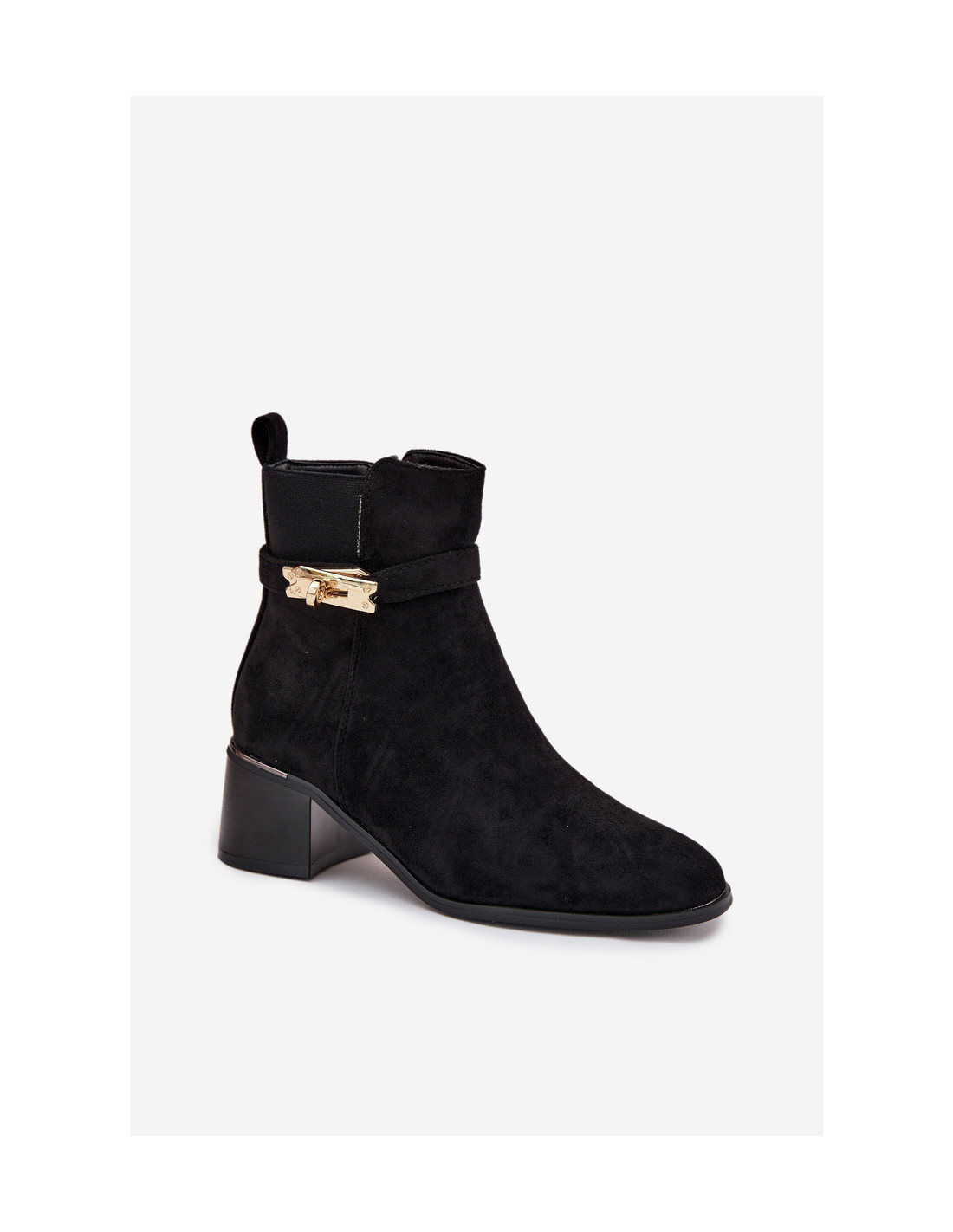 Šilti moteriški aulinukai iki kulkšnių su auksine dekoracija blokelyje, juodi „Sarona“