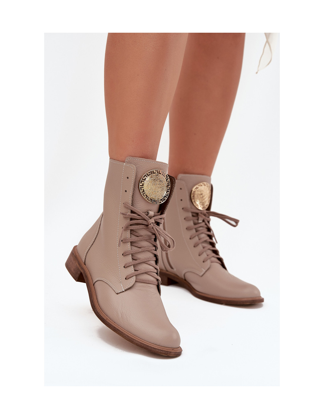 Šie moteriški aulinukai nuo kulkšnių puikiai dera su klasikiniu stiliumi ir moderniu įvaizdžiu. Ant plokščio kulno jie užtikrina komfortą ir stabilumą visą dieną. Raištelių užsegimas užtikrina puikų prigludimą, o papildomas užtrauktukas leidžia lengvai apsiauti. Auksinė detalė ant liežuvėlio suteikia elegancijos. Šie aulinukai nuo kulkšnių puikiai dera su įvairiais drabužiais, derindami komfortą ir madą. Rinkdamiesi dydį, vadovaukitės dydžių lentele.