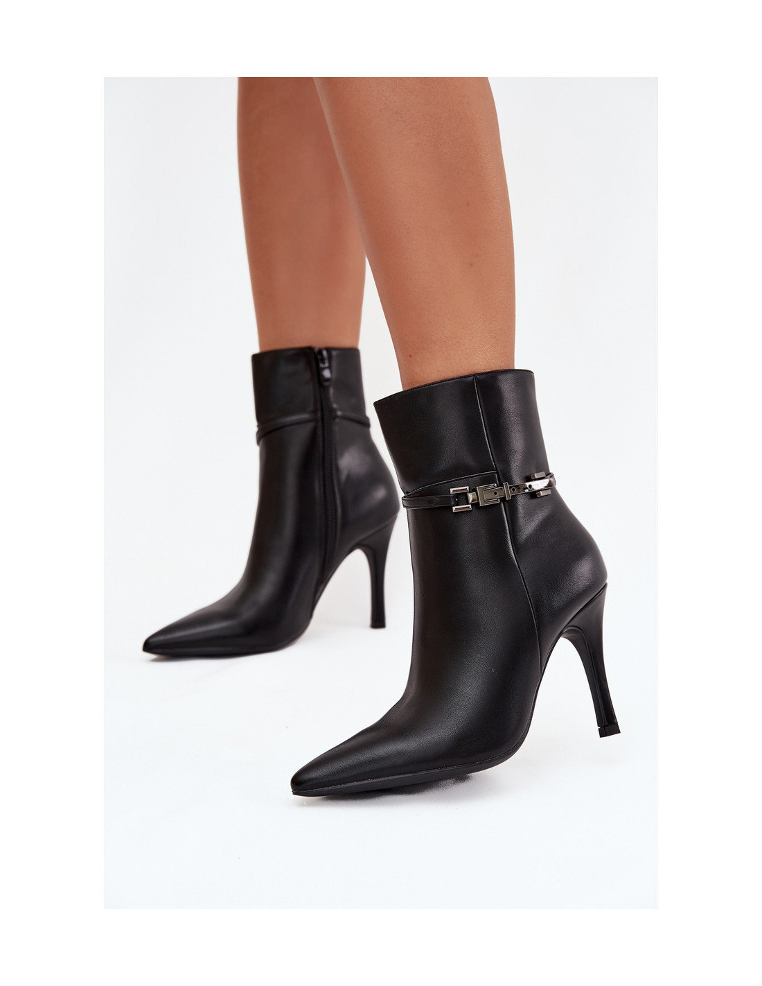 Šie moteriški aulinukai, pagaminti iš dirbtinės odos, yra elegantiškas pasirinkimas vėsesnėms dienoms. Ant siauro stileto kulno, jie gražiai pailgina siluetą, o smailios noselės pabrėžia moterišką batelių charakterį. Pamušalas viduje užtikrina komfortą ir šilumą. Stilingas akcentas – sidabrinis dirželis ant koto, suteikiantis batams išskirtinį, modernų vaizdą. Šis modelis puikiai tinka tiek kasdienai, tiek elegantiškai aprangai. Rinkdamiesi dydį, vadovaukitės dydžių lentele.