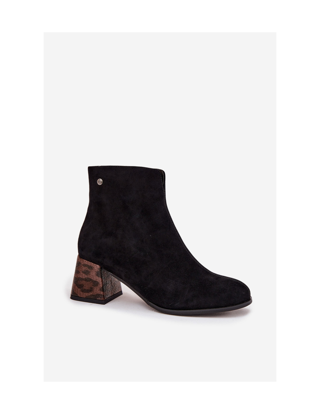 Maciejka K7202-01 moteriški odiniai zomšiniai aulinukai su kulnu, juodos spalvos