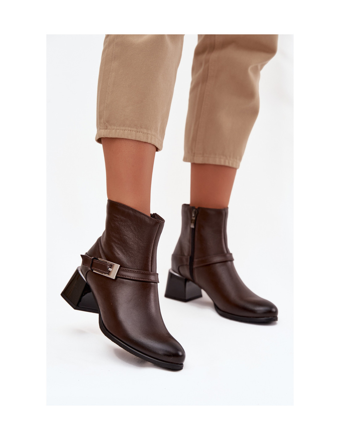 Šie moteriški aulinukai iki kulkšnių, pagaminti iš natūralios odos, yra elegantiškas pasirinkimas vėsesnėms dienoms. Veltinio pamušalas užtikrina komfortą ir šilumą, o stabilus blokinis kulnas suteikia elegantišką siluetą ir užtikrina komfortą. Praktiškas užtrauktukas leidžia juos lengvai avėti, o dekoratyvinė sagtis suteikia prašmatnumo ir modernumo. Šie batai puikiai tinka tiek kasdienai, tiek elegantiškai aprangai. Rinkdamiesi dydį, vadovaukitės dydžių lentele.
