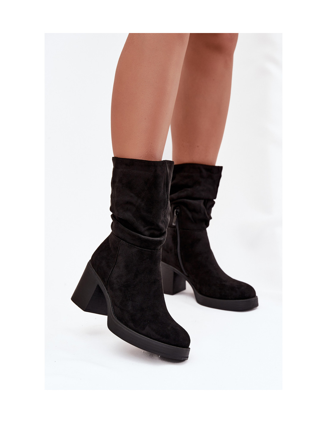 Šie moteriški aulinukai iki kulkšnių pagaminti iš dirbtinės zomšos. Jie pasižymi raukiniuotu viršutiniu sluoksniu, suteikiančiu jiems mados. Užsegamas modelis su papildomu užtrauktuku užtikrina patogumą juos avėti. Jie yra ant stabilaus blokinio kulno, užtikrinančio patogumą einant ir subtiliai liekninančio siluetą. Audiniu aptrauktas putplasčio pamušalas suteikia šilumos šaltesnėmis dienomis. Šie universalūs aulinukai puikiai tinka tiek kasdienai, tiek elegantiškesnei aprangai. Renkantis dydį, vadovaukitės dydžių lentele.