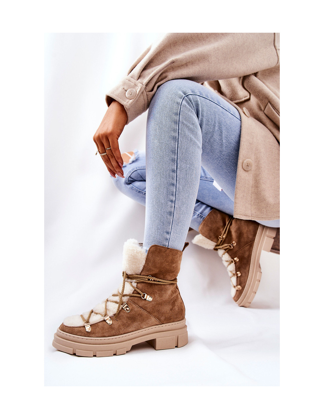Paminkštinti zomšiniai batai Trappers Beige Mindago