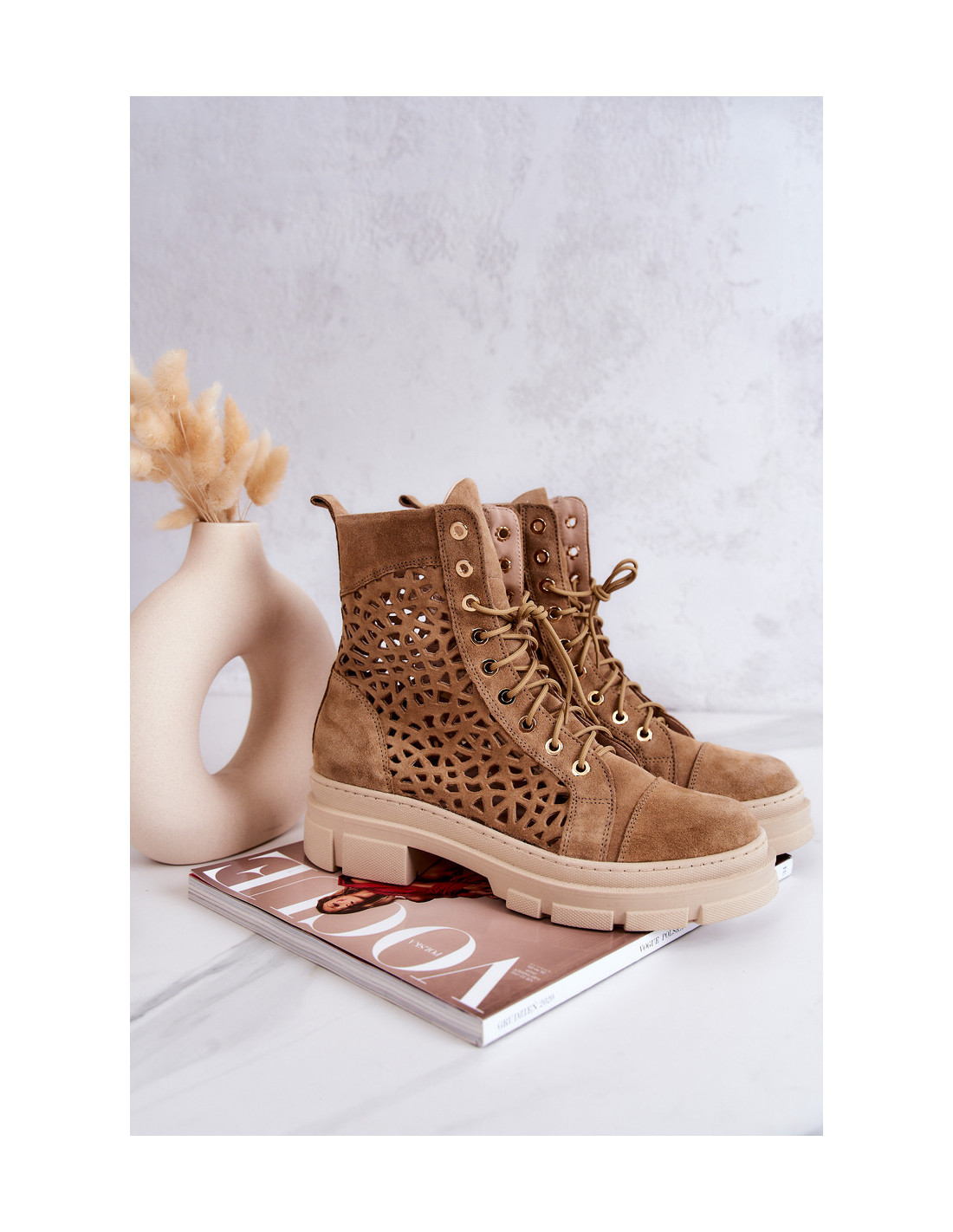 Puikūs, ažūriniai batai yra pagaminti iš natūralios, zomšinės odos, atkreipiant dėmesį į kiekvieną detalę. Odinis vidpadis ir patogus, plokščias kulnas pasirūpins Jūsų patogumu. Batai papildys daugybę stilių. Jie turi klasikinį įrišimą. Turėtumėte papildyti savo garderobą šio modelio aulinukais, tad nelaukite ir įsigykite jau dabar! Renkantis dydį, naudokite dydžių lentelę.