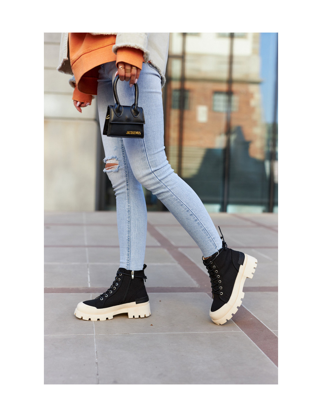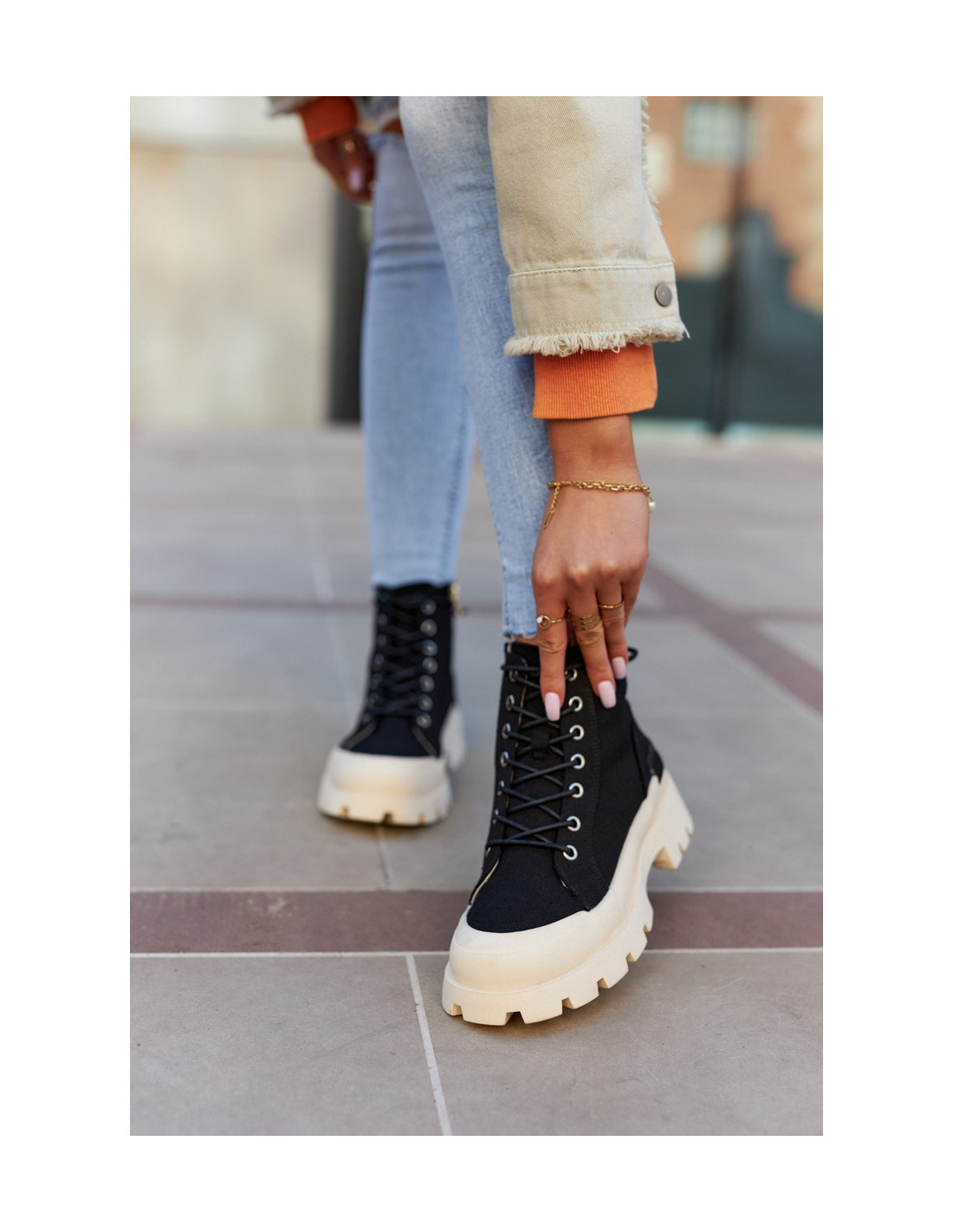 Puikus sportbačių ir sportbačių derinys viename! Viršutinė dalis pagaminta iš tekstilės medžiagos. Vidpadis pagamintas iš aukštos kokybės eko odos. Tobulą prigludimą užtikrins vientisas suvarstymas ir viršutinės dalies šone įsiūtas užtrauktukas. Žygio batai turi sustiprintą guminį nosį, todėl yra atsparesni mechaniniams pažeidimams. Kulnas papildomai sutvirtintas. Būtinai peržiūrėkite visą mūsų batų kolekciją. Renkantis dydį, naudokite dydžių lentelę.