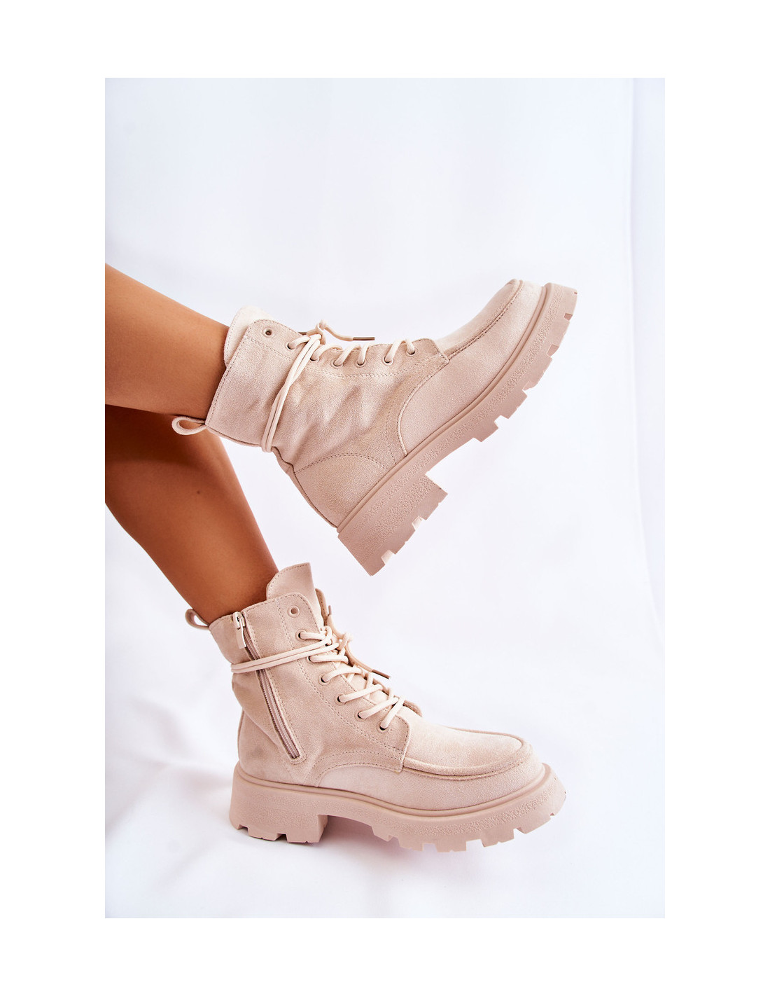 Moteriški zomšiniai batai, suvarstomi, smėlio spalvos Vanita