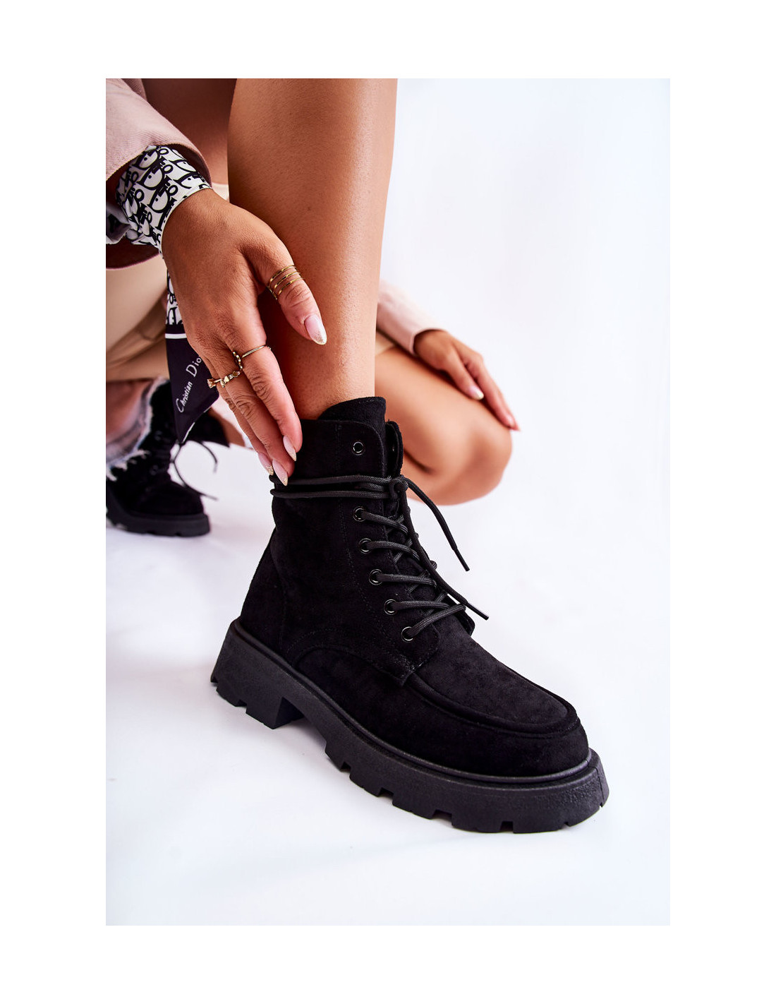 Klasikiniai batai su kulkšnies viršumi yra pagaminti iš malonios liesti ekologiškos zomšos. Šio modelio viršutinės dalies šone yra užtrauktukas. Be to, jie yra suvarstomi, kurie leis avalynę tinkamai priderinti prie kojų pločio. Jie montuojami ant subtilios platformos ir plokščių kulnų. Jie turi izoliaciją malonaus liesti kailio pavidalu. Kulnas šiek tiek sutvirtintas. Renkantis dydį, naudokite dydžių lentelę.