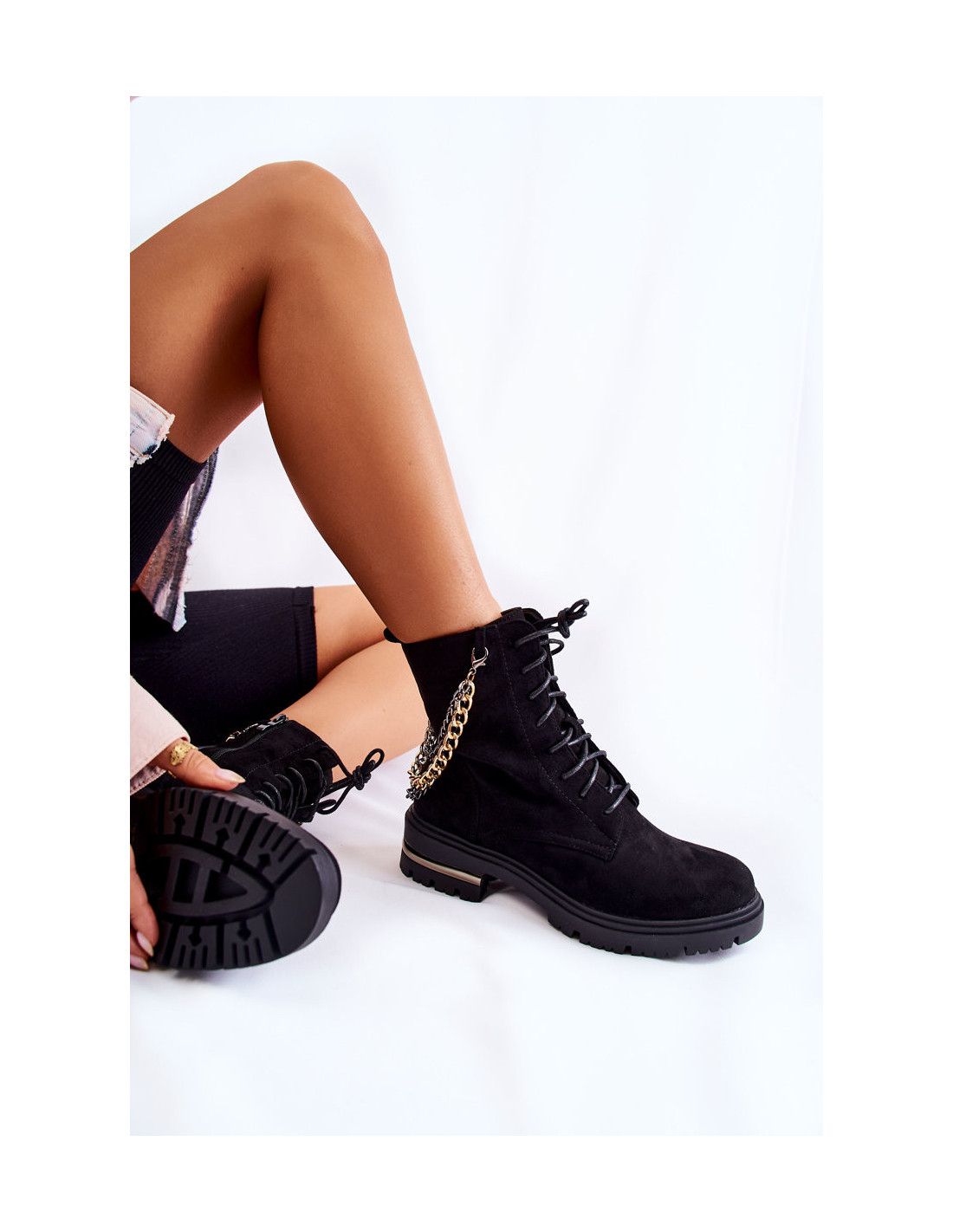 Zomšiniai šilti batai su grandinėle Black Sorita
