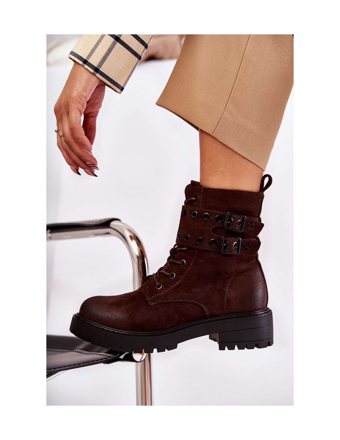 Moteriški šilti zomšiniai batai, rudi sidabriniai