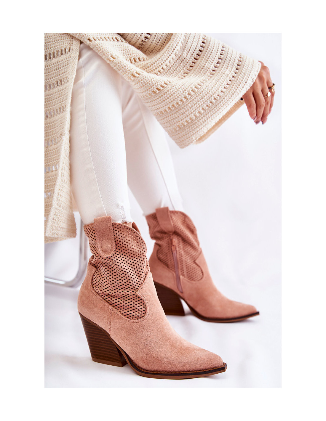 Moteriški zomšiniai ažūriniai kaubojų batai Eleonore rožiniai