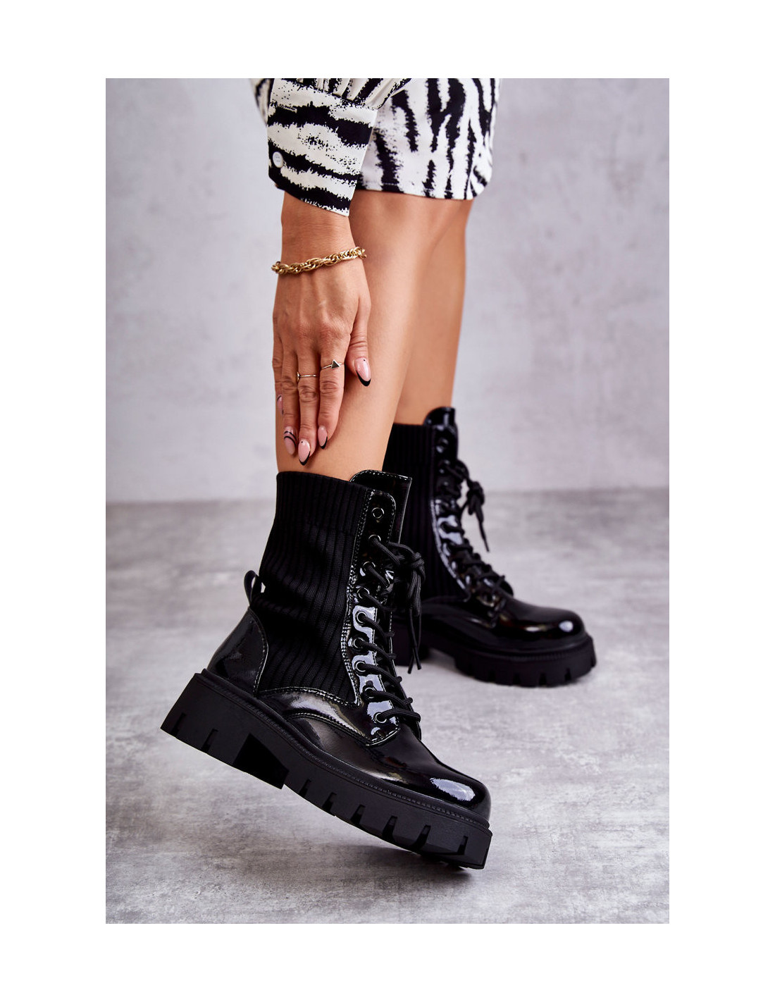 Moteriški lakuoti darbiniai batai su kojinėmis Juoda Abigail