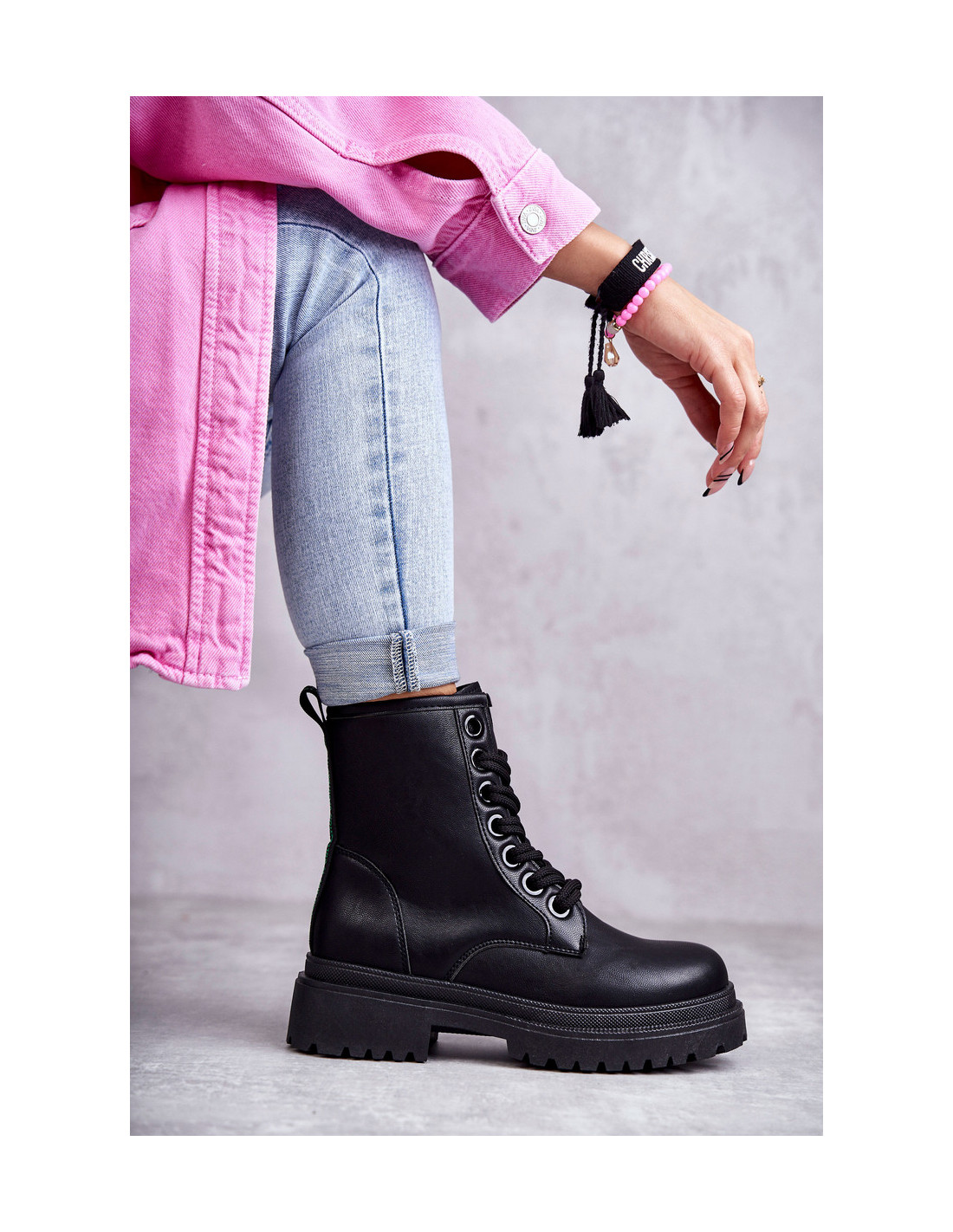 Klasikiniai moteriški batai yra pagaminti iš ekologiškos odos. Jie turi užtrauktuką viršutinės dalies šone ir dvigubą suvarstymą. Madinga ir patogi tuo pačiu metu. Batai montuojami ant plokščio kulno su protektoriumi. Jie turi izoliaciją avalynės antklodės pavidalu. Be to, kulno skaitiklis yra standesnis. Šie batai turėtų būti jūsų drabužių spinta! Renkantis dydį, naudokite dydžių lentelę.
