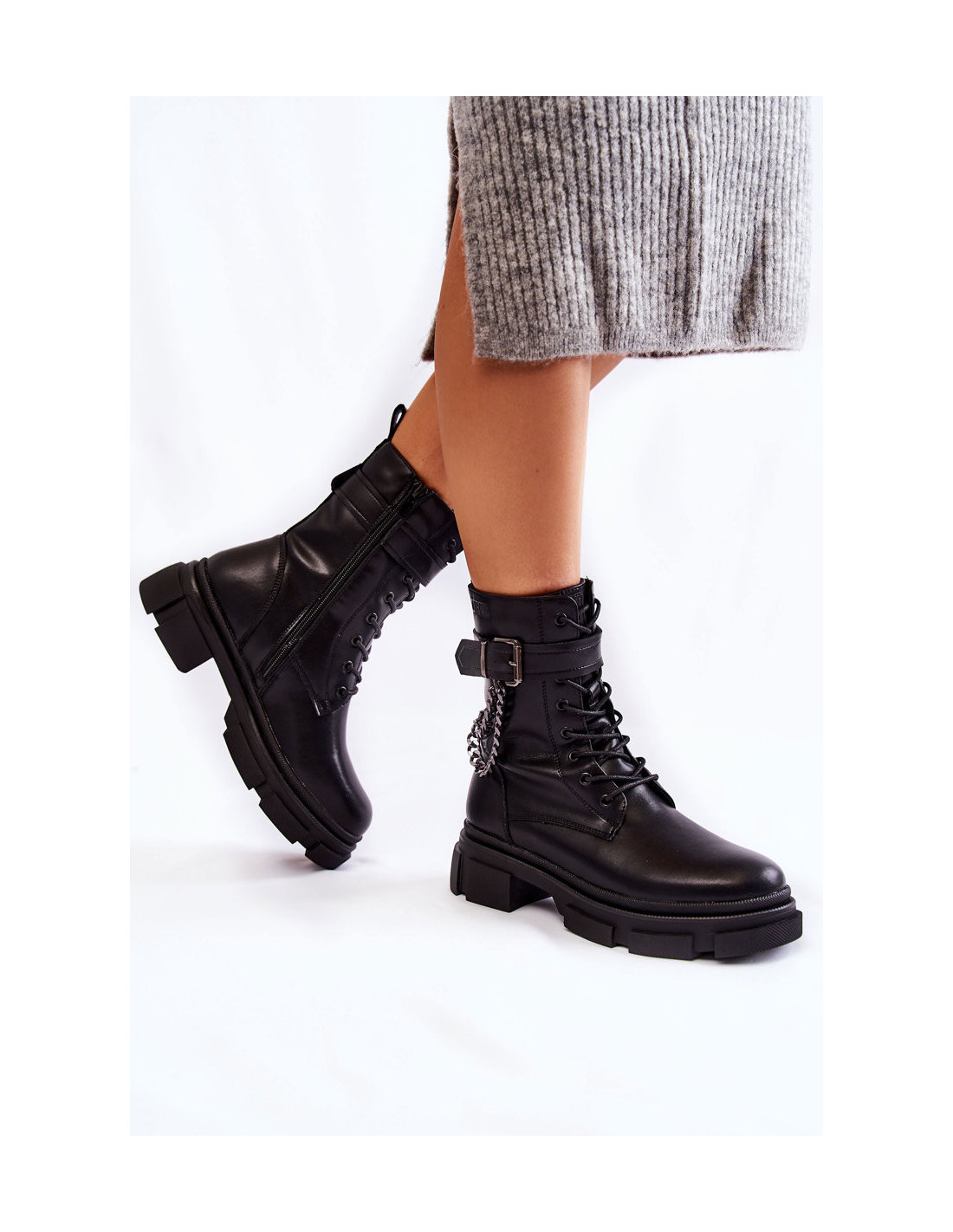 Batai – prekės ženklo Big Star batai yra pagaminti iš natūralios odos. Jie turi klasikinį suvarstymą ir užtrauktuką šone. Dekoratyvinė grandinėlė nenusegama, o diržas su sagtimi reguliuojamas. Batų vidus izoliuotas minkšta liesti batų antklode. Be to, šių batų kulnų skaitiklis yra izoliuotas. Batai montuojami ant plokščio kulno ir platformos. Renkantis dydį, naudokite dydžių lentelę.