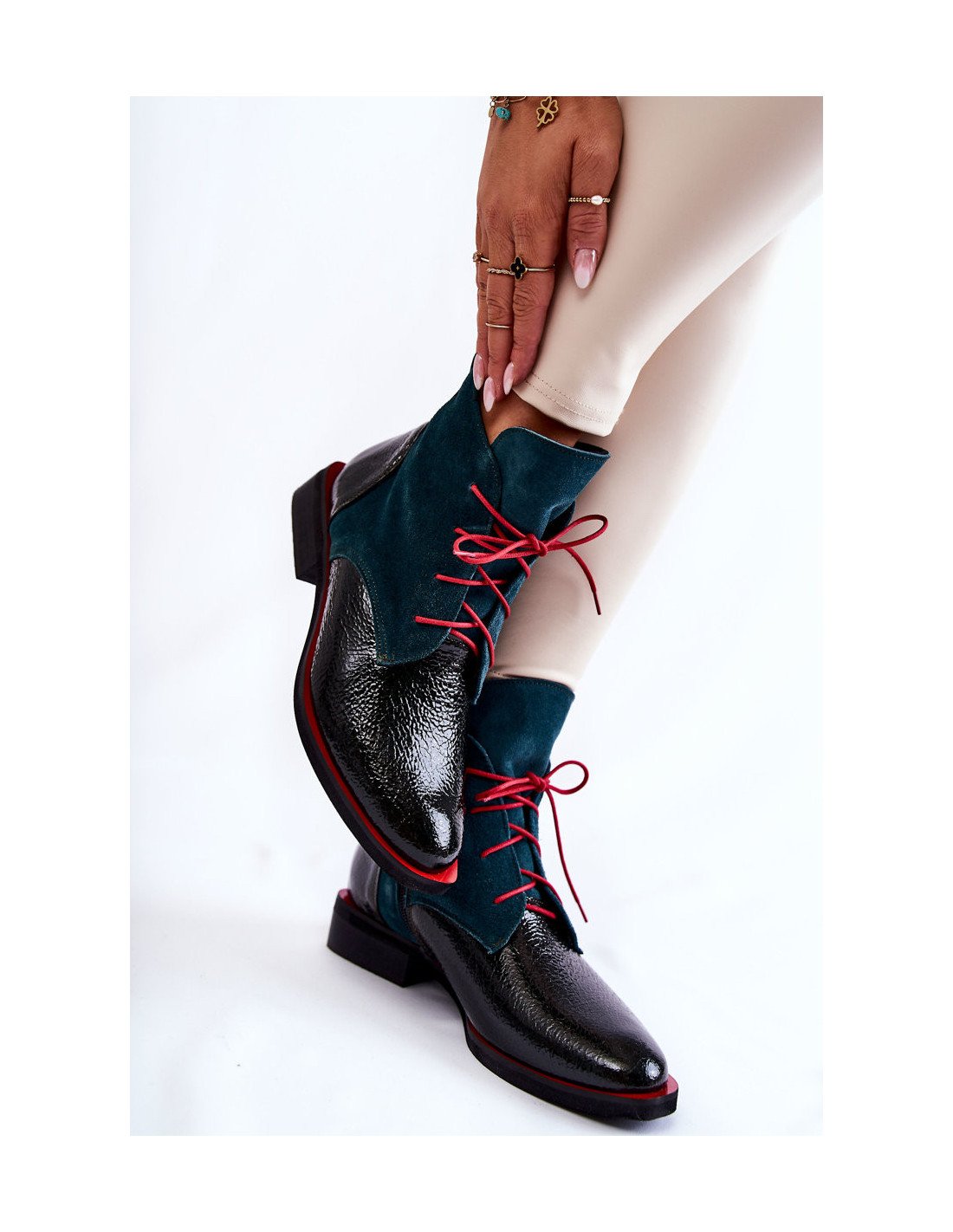 Unikalūs lenkų gamintojo batai. Batai pasižymi aukšta darbo kokybe ir dėmesiu detalėms. Batai yra pagaminti rankomis iš lakinės odos ir zomšos. Odinis vidpadis ir patogus kulnas užtikrins maksimalų komfortą! Dėl dailiai dekoruoto batviršio batai praturtins visas jūsų stilizacijas. Renkantis dydį, naudokite dydžių lentelę.